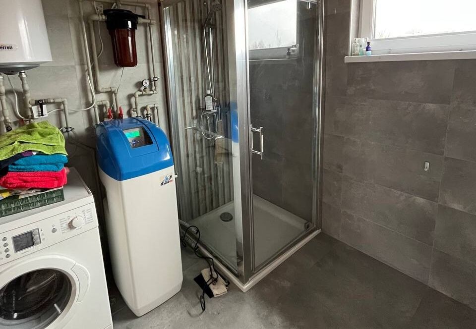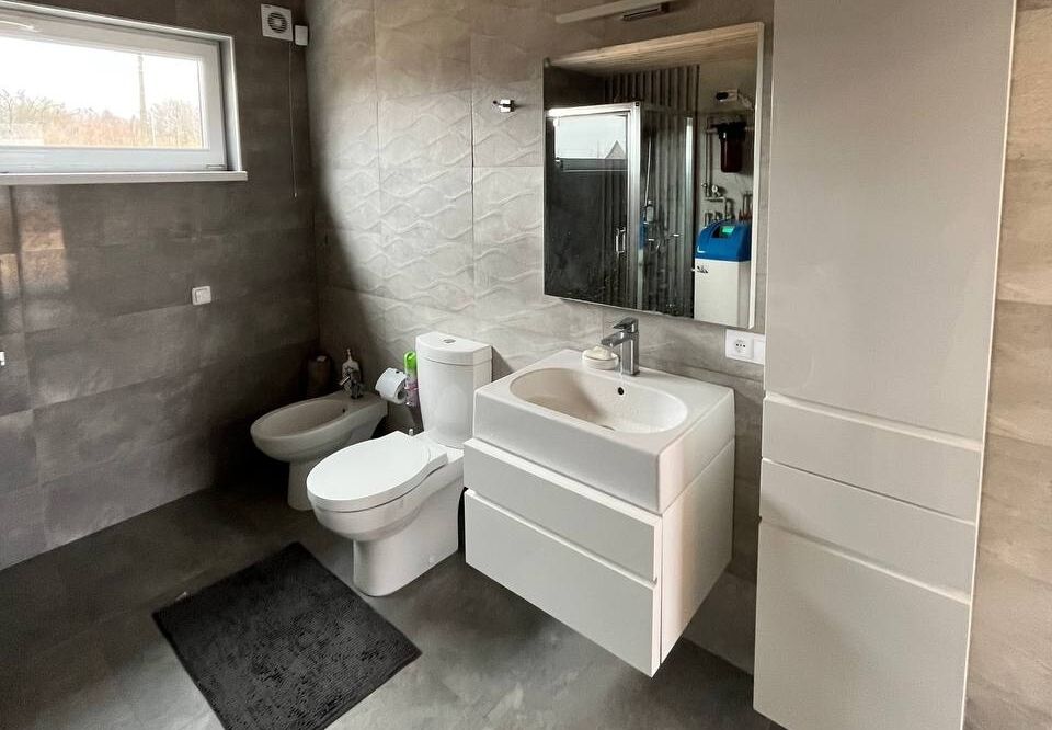 Отопление электрическое, водоснабжение центральное, канализация местная. На кухне встроена система обратного осмоса, в санузле установлен умягчитель воды. Видеонаблюдение — по периметру дома, установлена сигнализация. В деревню проведено оптоволокно.