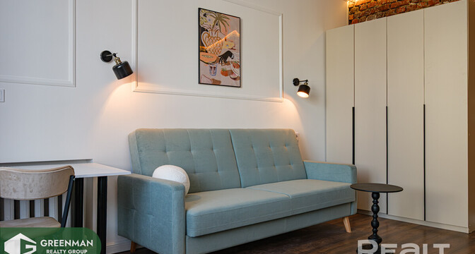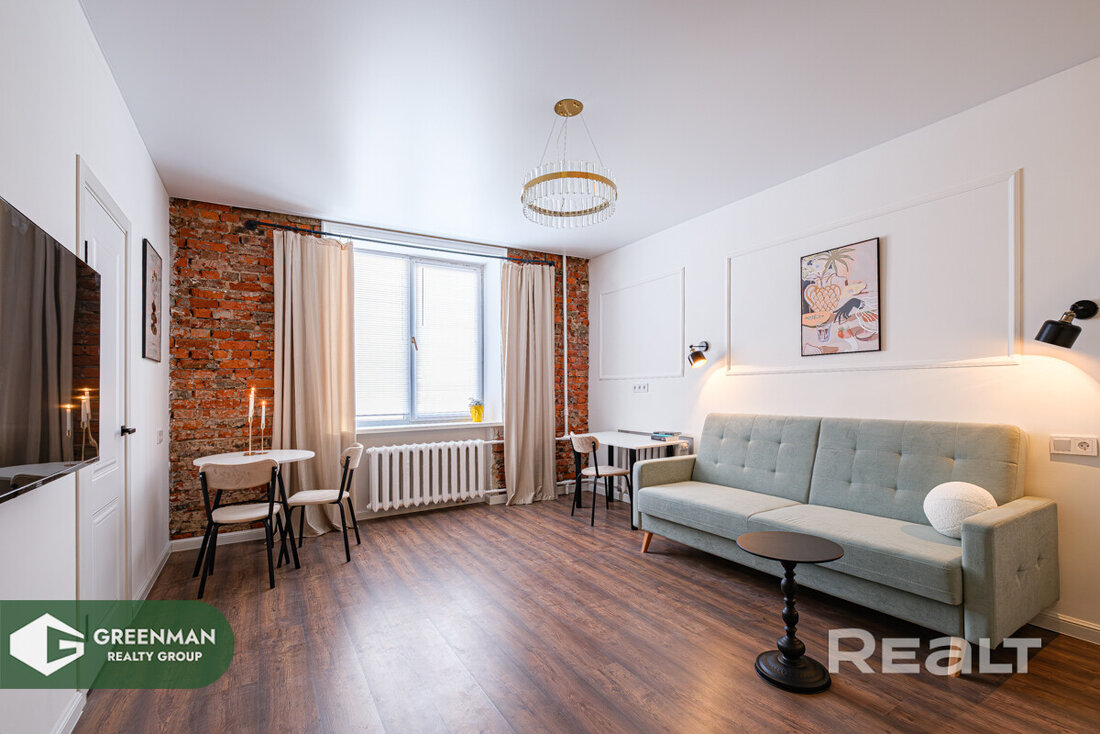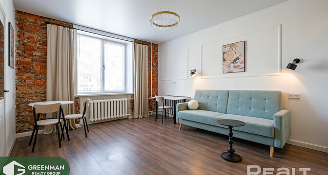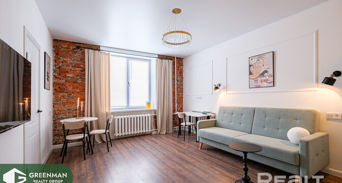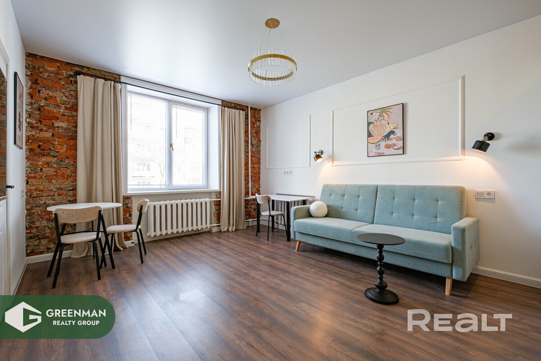 Некоторые квартиры контрастно выбиваются из среды, в которой находятся. Сталинок со свежим ремонтом хоть и становится больше, но в общей массе это все же скорее исключение, чем правило. И каждая такая квартира привлекает внимание. Так и эта однушка в трехэтажной сталинке на улице Коржа рядом с проспектом Дзержинского. Посмотрим, как удалось обыграть современный ремонт с аутентичными деталями в старом жилфонде.