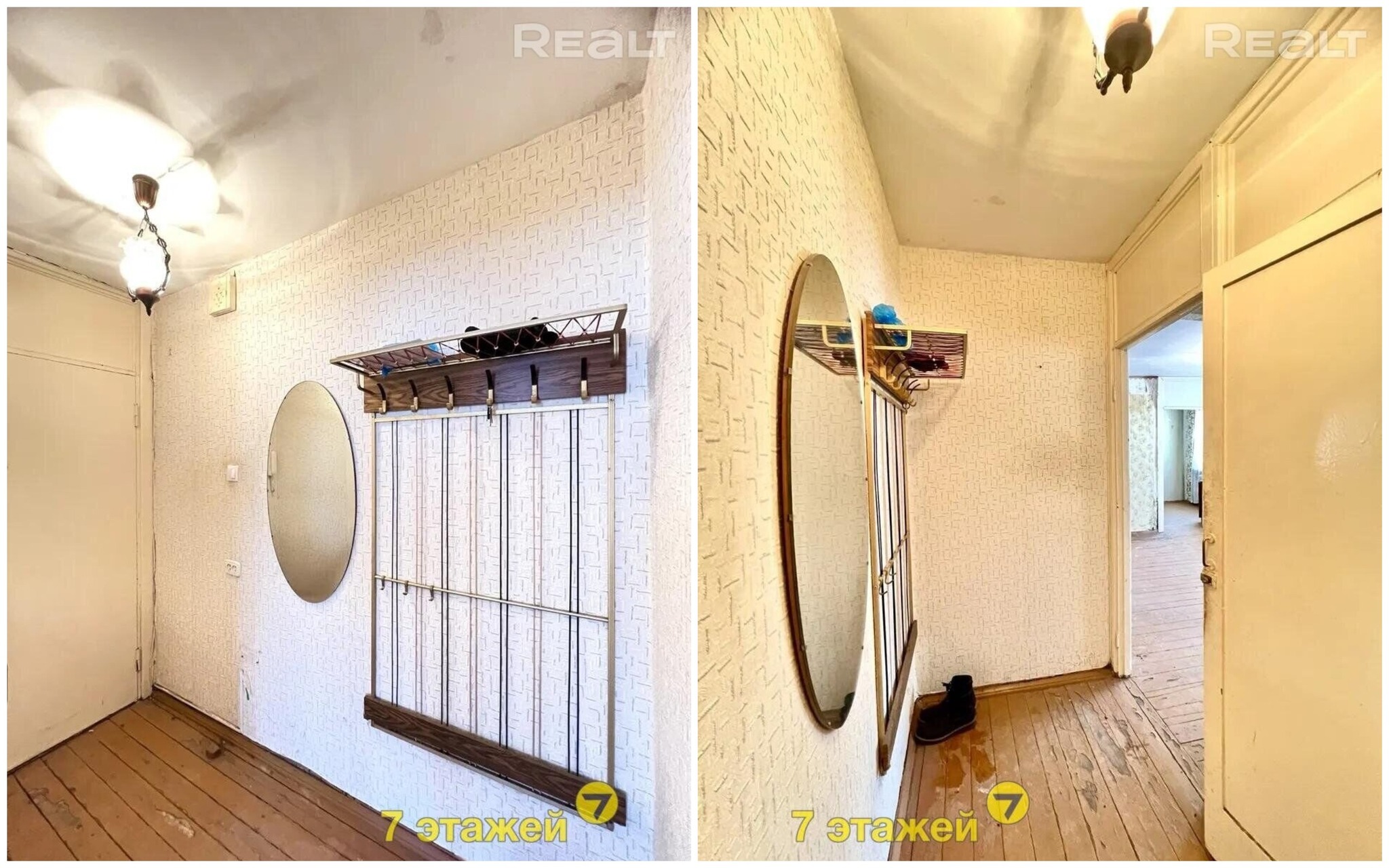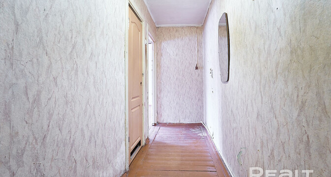 В квартире две изолированные комнаты, которые нуждаются в ремонте. На полу лежит разное покрытие, стены оклеены обоями, установлены деревянные рамы. В коридоре есть небольшая ниша, куда может поместиться шкаф. Балкона в двушке нет.
