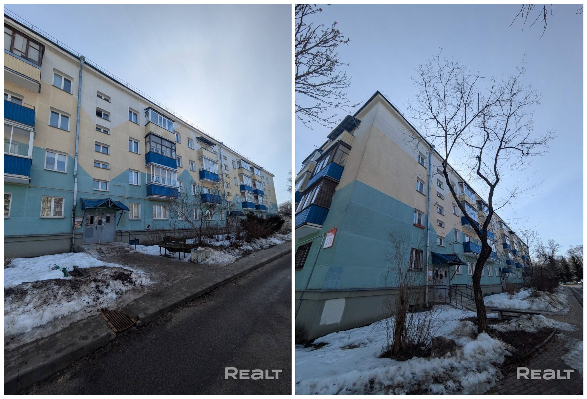 На Ангарской, 18/3 в 1966 году построили пятиэтажный дом. Сейчас на первом уровне продается двухкомнатная квартира в 43,8 м² с кухней в 6 квадратов.