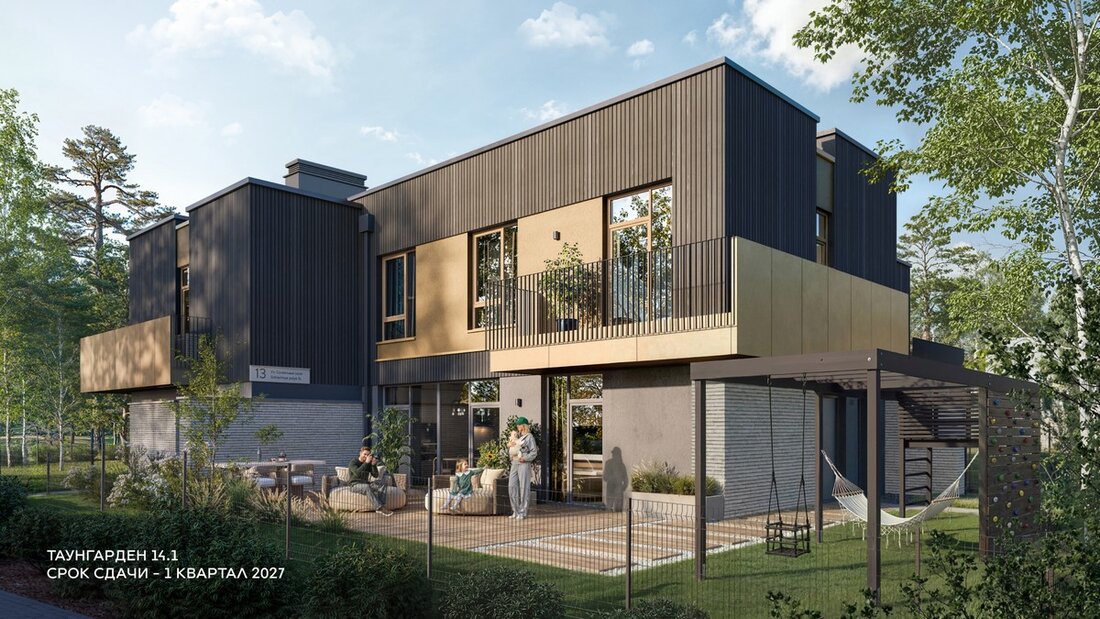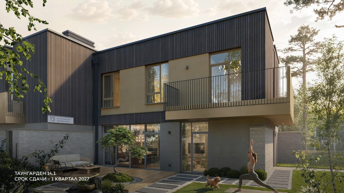 Свободная планировка квартир позволяет организовать на первом этаже прихожую с гардеробом, просторную кухню-гостиную с выходом на участок и кабинет. Так же на первом этаже будут расположены мини-котельная с индивидуальным газовым котлом и гостевой санузел. Сквозь панорамный витраж на первом этаже будет виден собственный сад.
