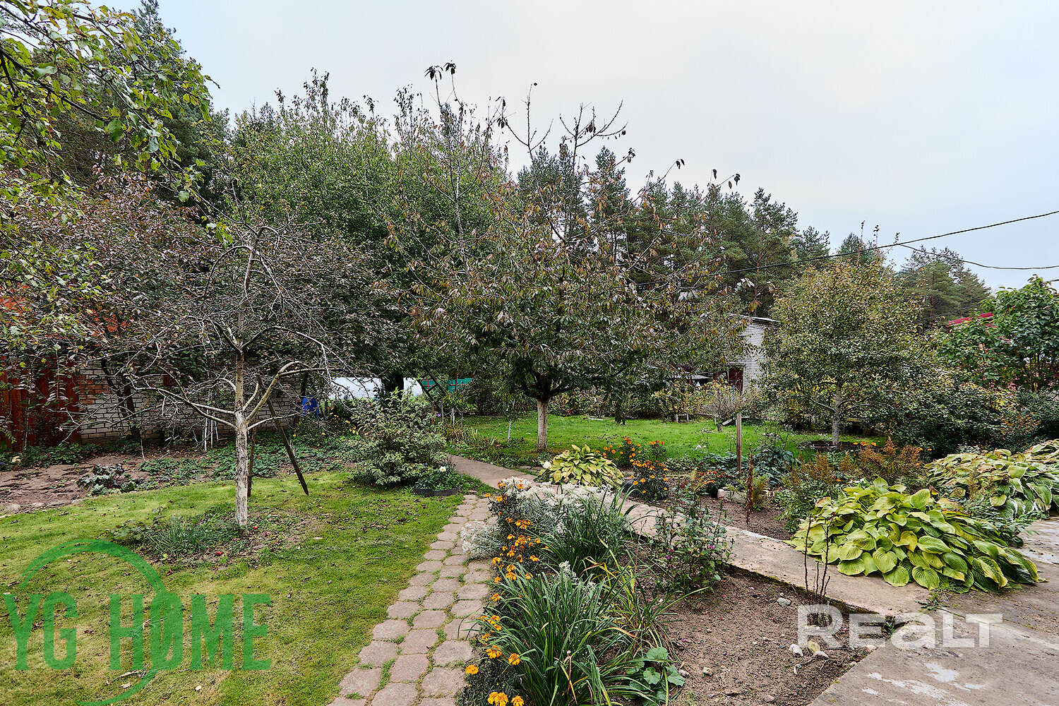 Стоит коттедж на крайнем участке площадью почти 10 соток. Территория полностью выровнена и благоустроена. Участок огорожен забором, здесь уже растут фруктовые деревья, кустарники. Есть теплица и хозпостройки.