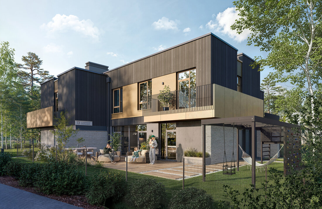 Если мезонеты и лайнхаусы — это история, отсылающая к городской застройке, то твинхаусы и дуплексы максимально приближены к формату классического загородного коттеджа.