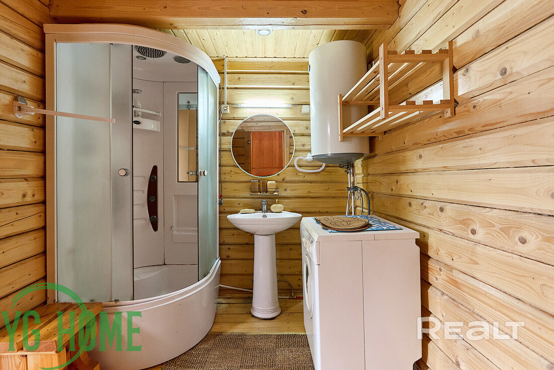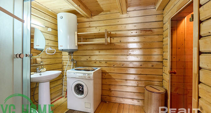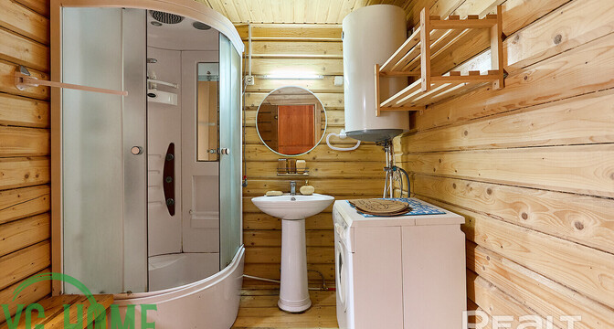 На участке есть баня из бруса площадью 29 квадратов с просторной террасой. В бане есть парилка, душевая, установлена стиральная машина и бойлер.