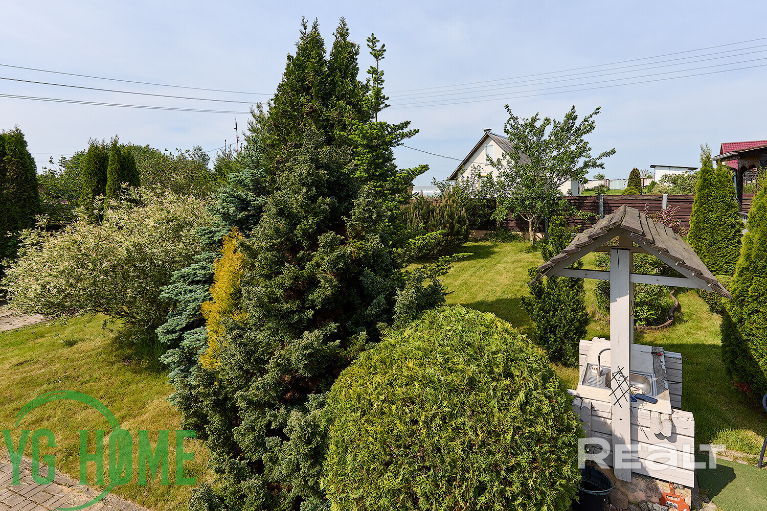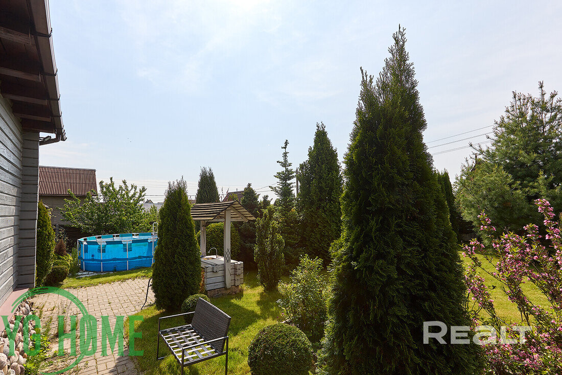 Участок состоит из двух и составляет 15,6 сотки. Здесь выполнен ландшафтный дизайн и высажены декоративные растения, плодовые деревья и кустарники. Есть парник.