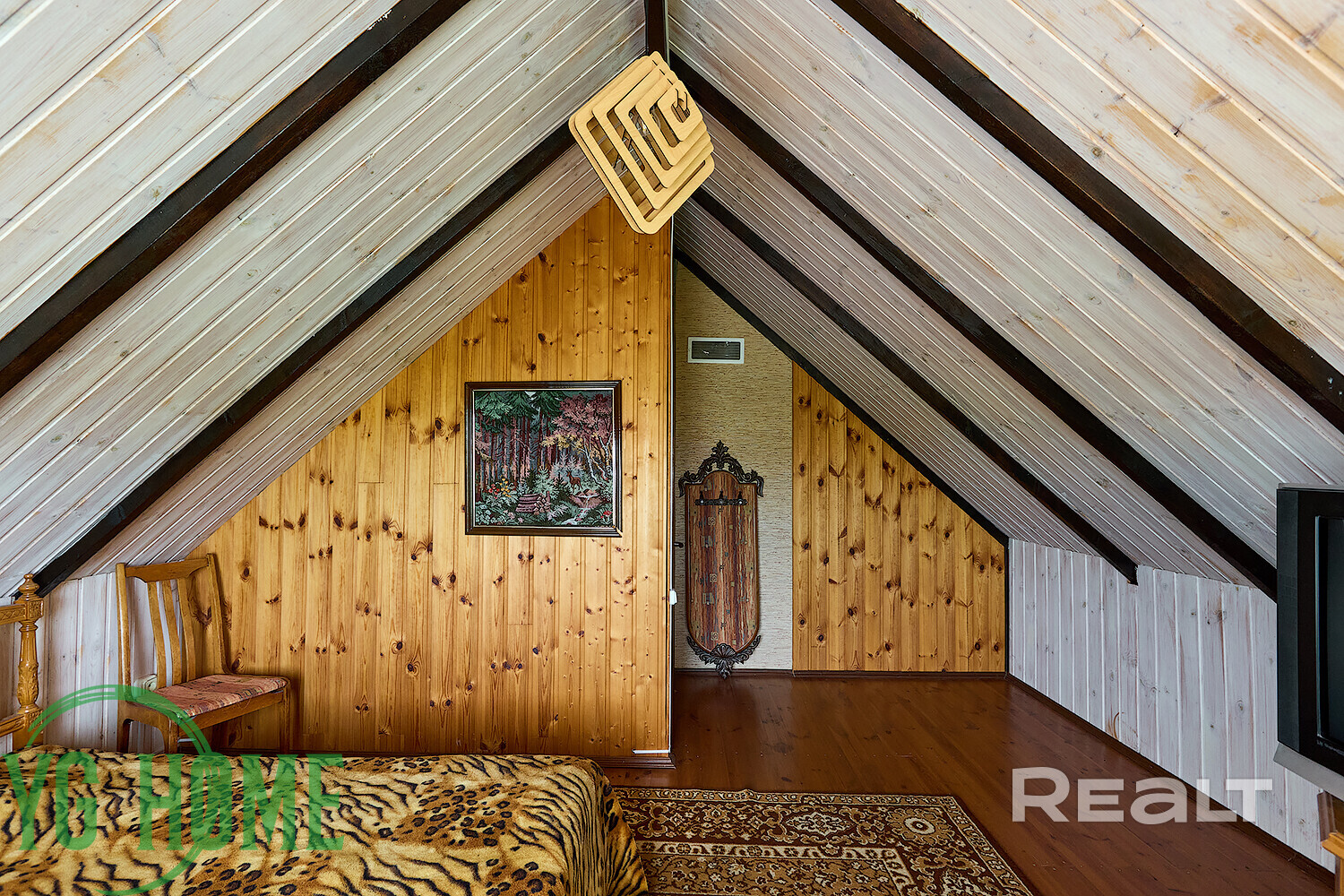 На втором этаже, под скатной крышей, оборудованы две отдельные комнаты.