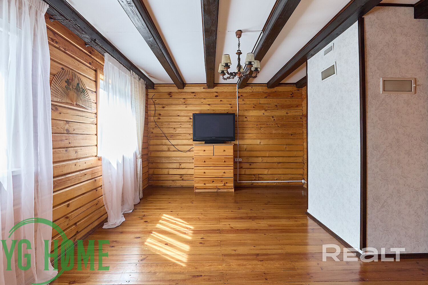 Дача построена из бруса в 2009 году. Общая площадь дома — 80 квадратных метров.
