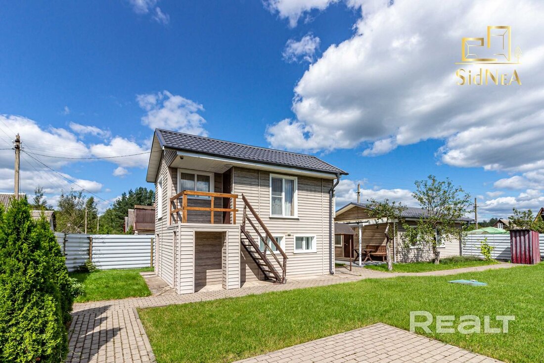 Здесь продается деревянный дачный дом 2012 года постройки. Стоит на высоком фундаменте, на крыше – металлочерепица. Входные двери металлические, окна ПВХ.