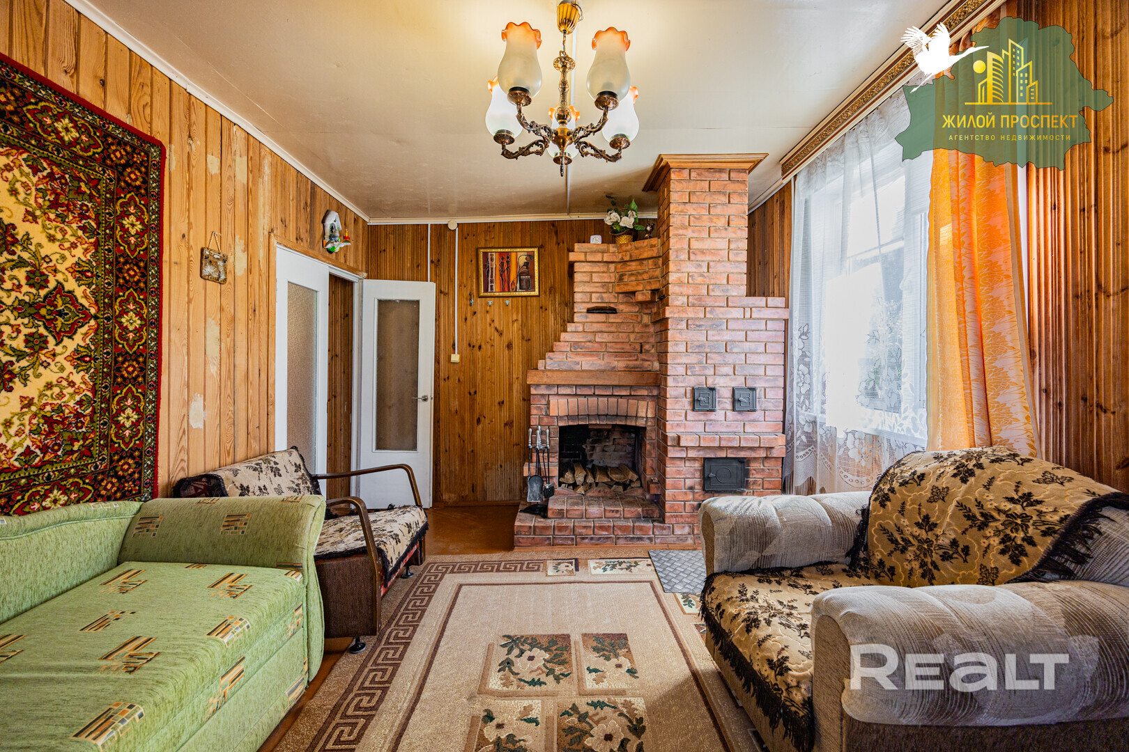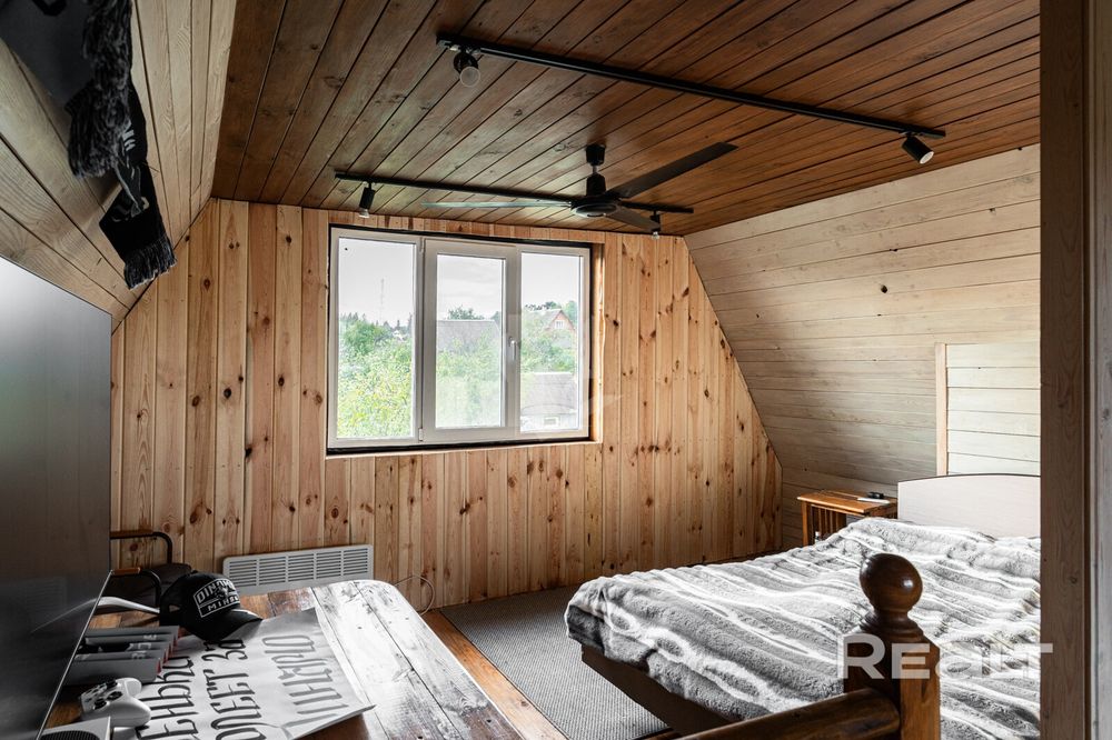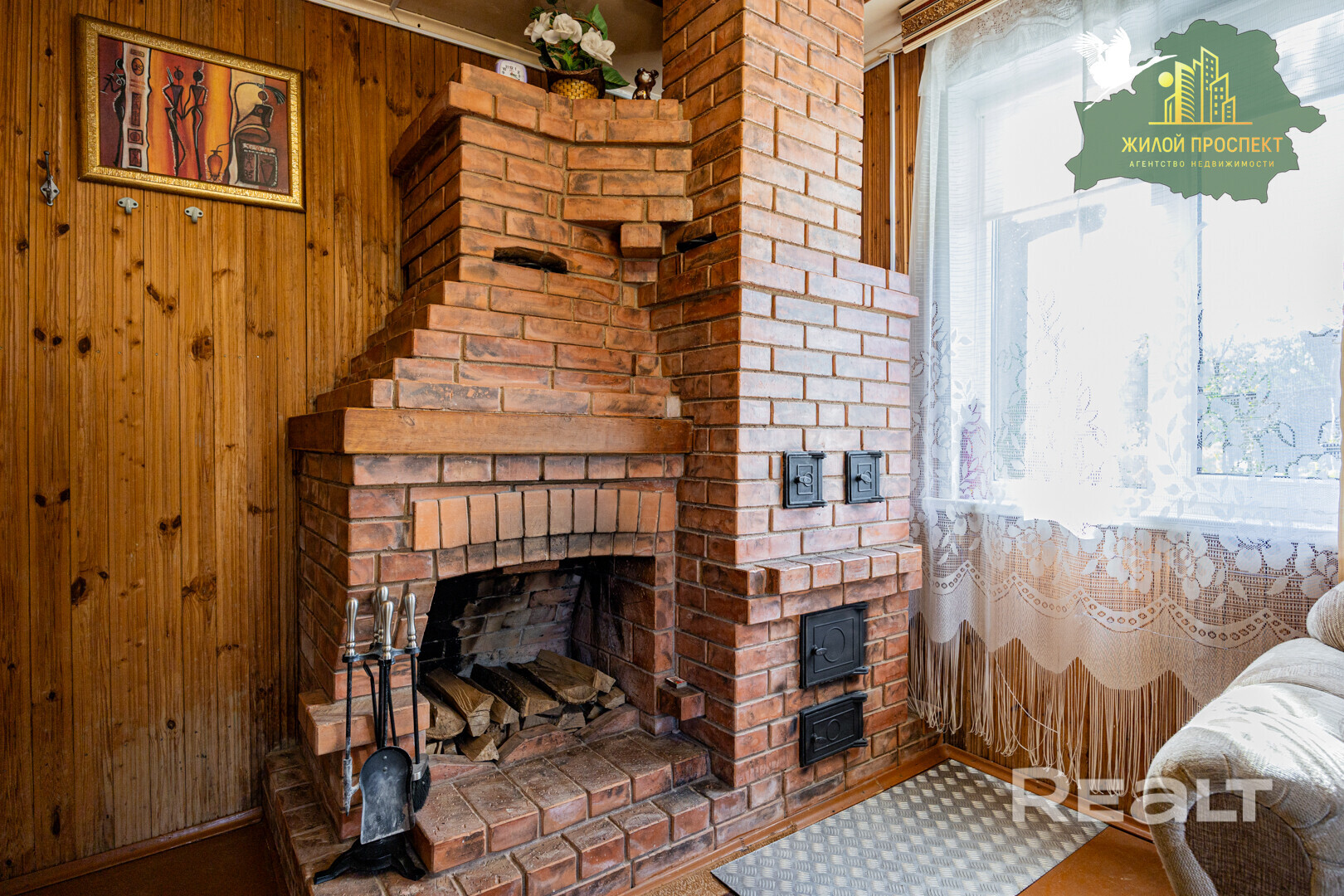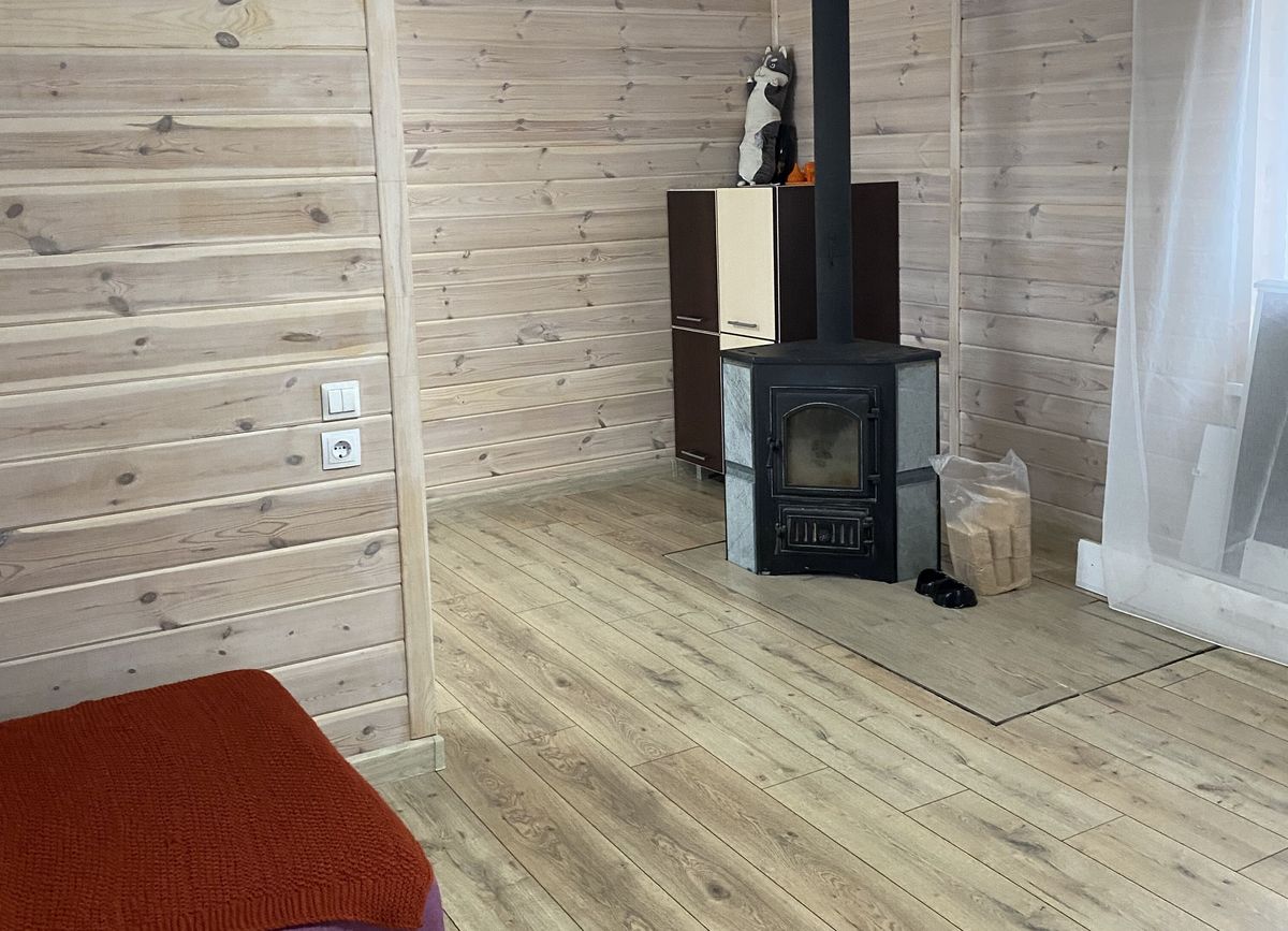 Общая площадь – 69 м2. На первом этаже расположены кухня и совмещенный санузел с душевой кабиной и бойлером, комната с печью-камином. На втором этаже – спальня на 19,5 м2. Полы и перекрытия деревянные. Мебель остается по договоренности.