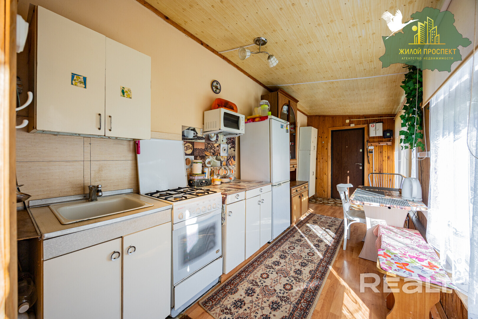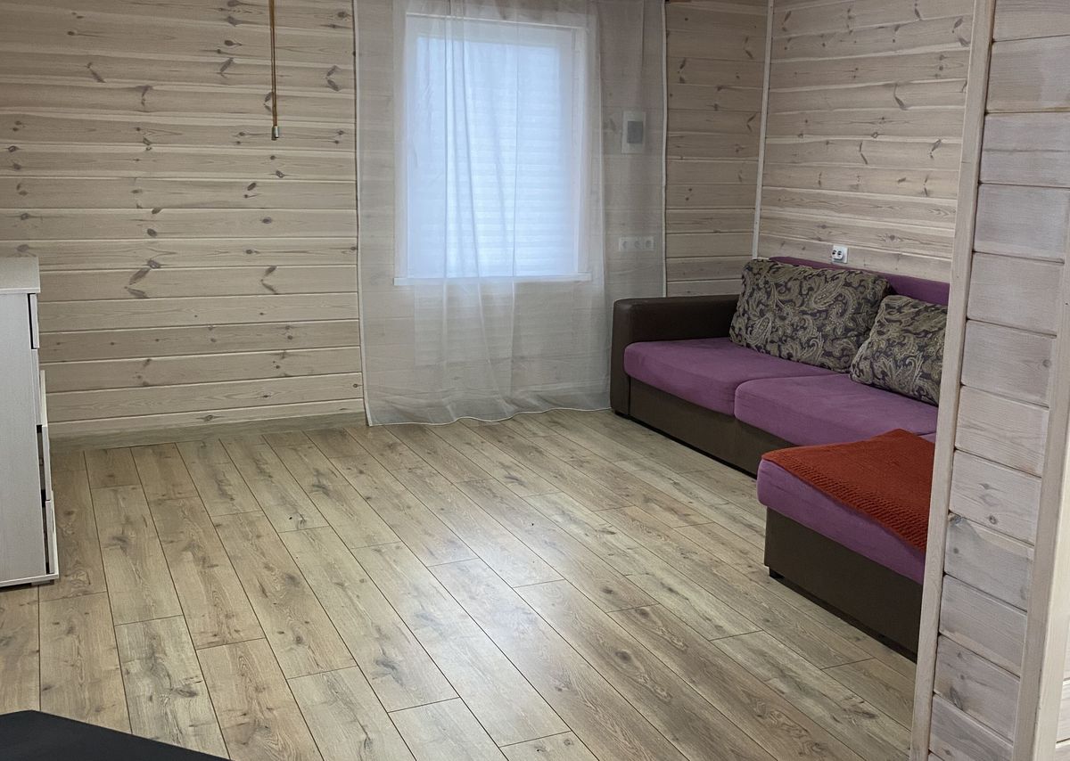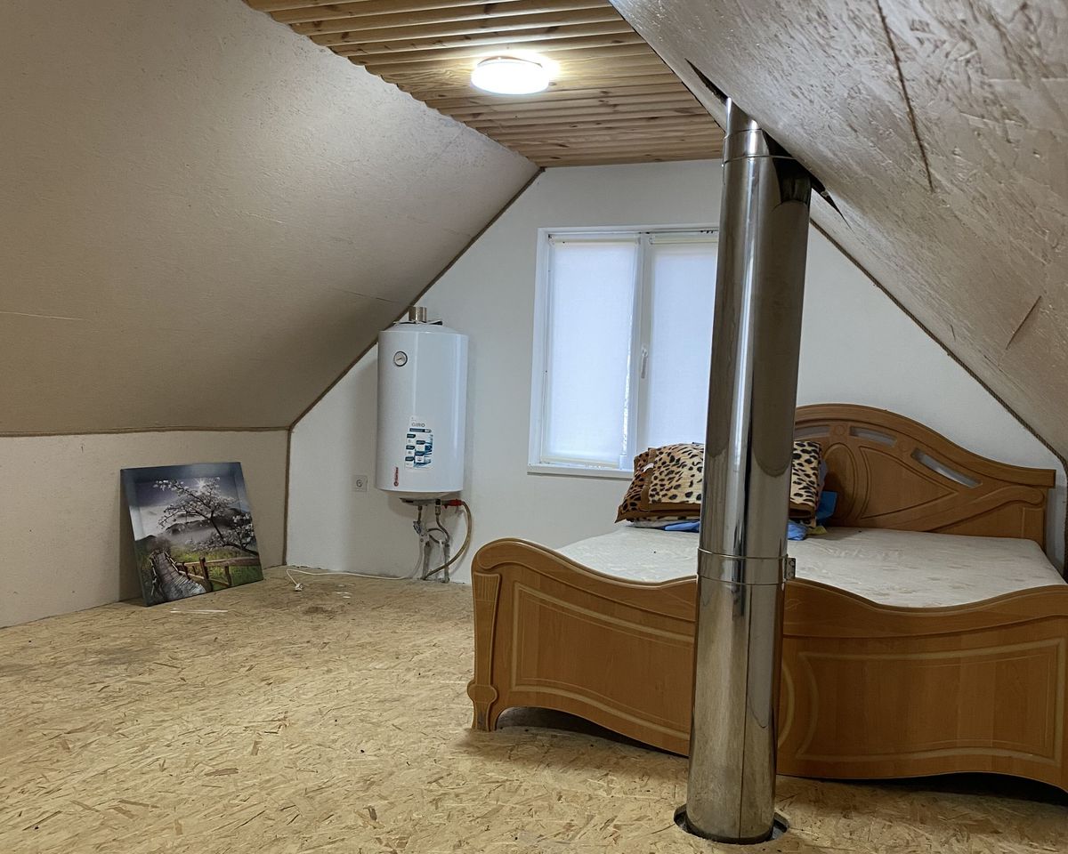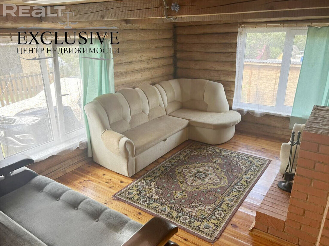 Общая площадь – 69 м2. На первом этаже расположены кухня и совмещенный санузел с душевой кабиной и бойлером, комната с печью-камином. На втором этаже – спальня на 19,5 м2. Полы и перекрытия деревянные. Мебель остается по договоренности.