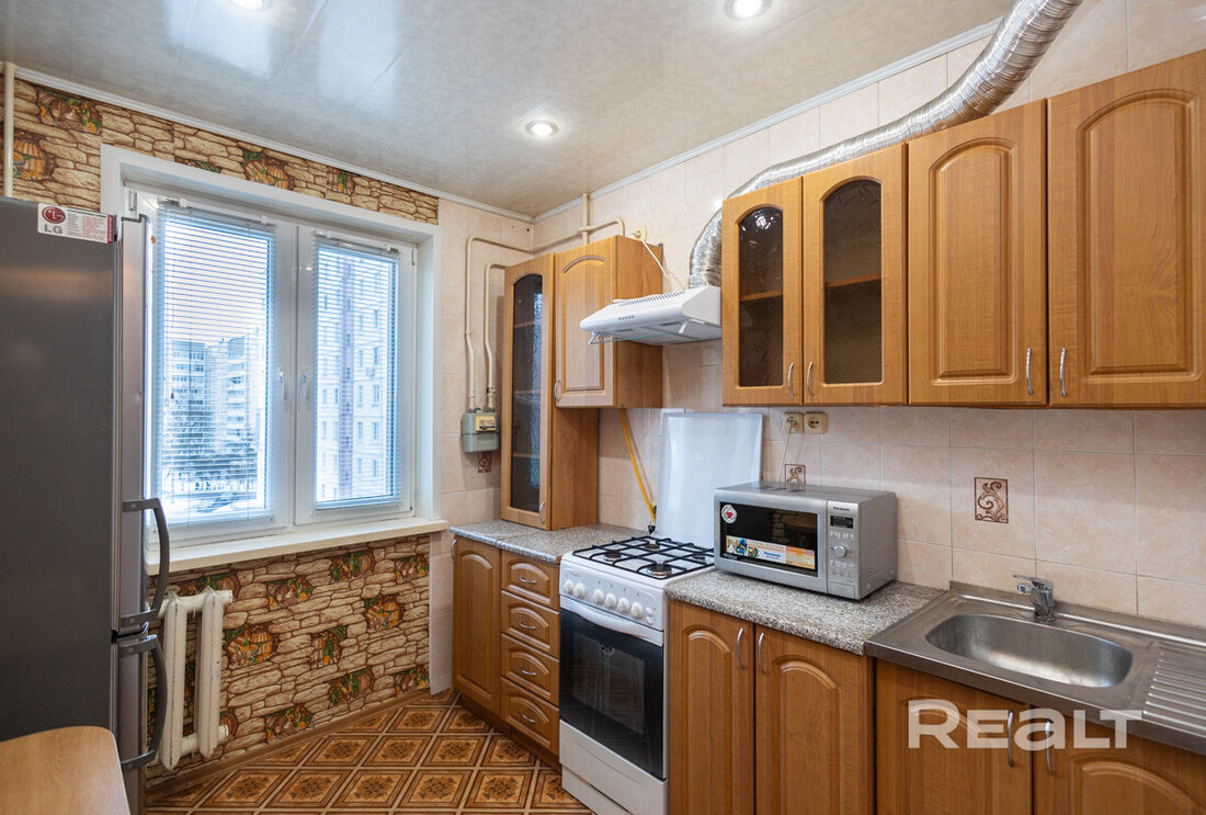 Трешка продается на последнем уровне пятиэтажного дома на Притыцкого, 52. Ее площадь — 55,02 м². На кухню отведено 7,92 м². Здание было построено в 1972 году, капремонт прошел в 2017-м.