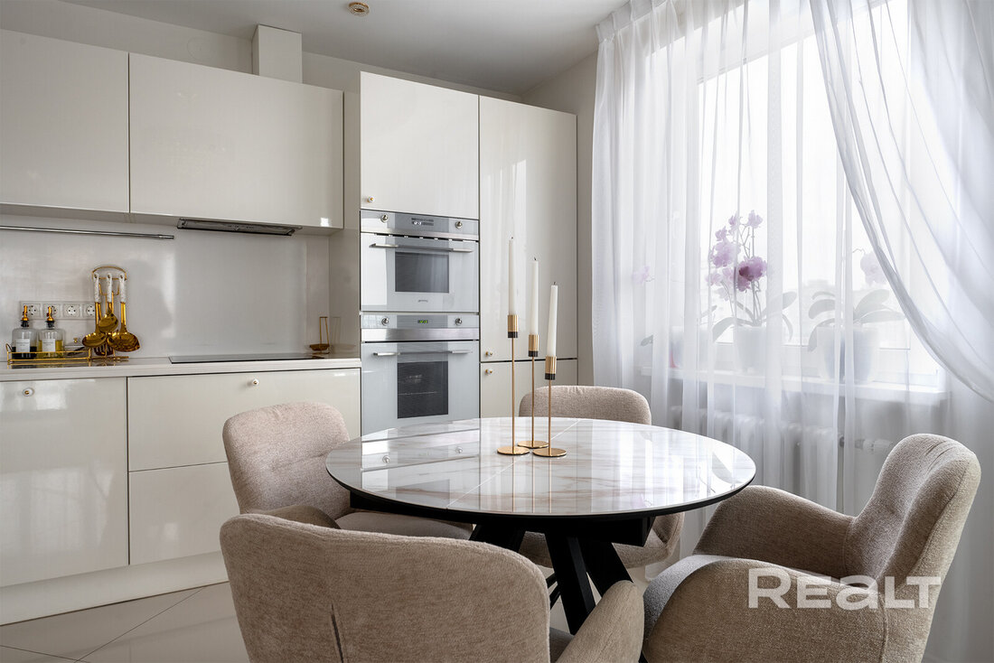 № 1. Мечтали о просторной квартире в центре города с джакузи? Тогда этот вариант может понравится. Четырехкомнатная квартира на пр-те Машерова интересна не только стильным ремонтом и расположением недалеко от стелы «Минск — город-герой», парка Победы и Комсомольского озера, но и планировкой. Площадь 113 кв.м., из которых 13 кв.м. приходится на кухню и более 11 квадратов на 2 санузла, в одном из которых установлена джакузи. А еще есть лоджия (3,5 кв.м.) и 2 балкона, один из которых на 10 квадратов! С учетом расположения квартиры на 19 этаже, виды с балкона должны открываться живописные. Из плюсов: вся мебель и техника, остается в квартире. Но еще неделю назад эту квартиру можно было бы купить на 51 000 $ дешевле — за 279 000 $, а на момент написания обзора ее стоимость составляет 330 000 $ или 3 195 $ за метр.