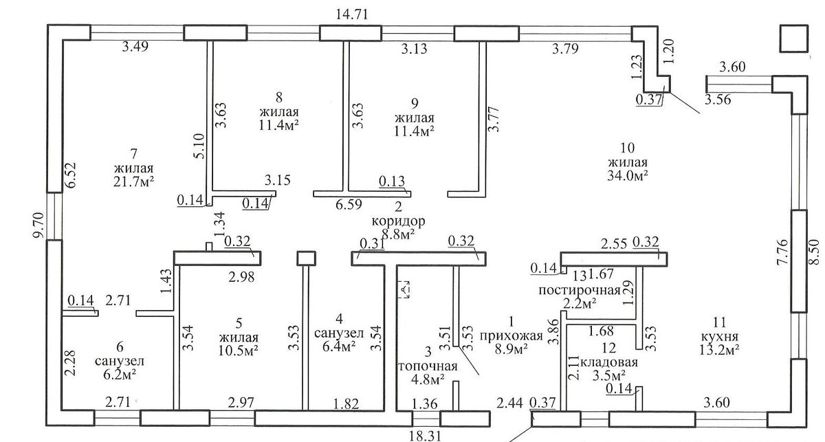 Прихожая находится в центральной части строения. Здесь же находятся помещения топочной и постирочной.