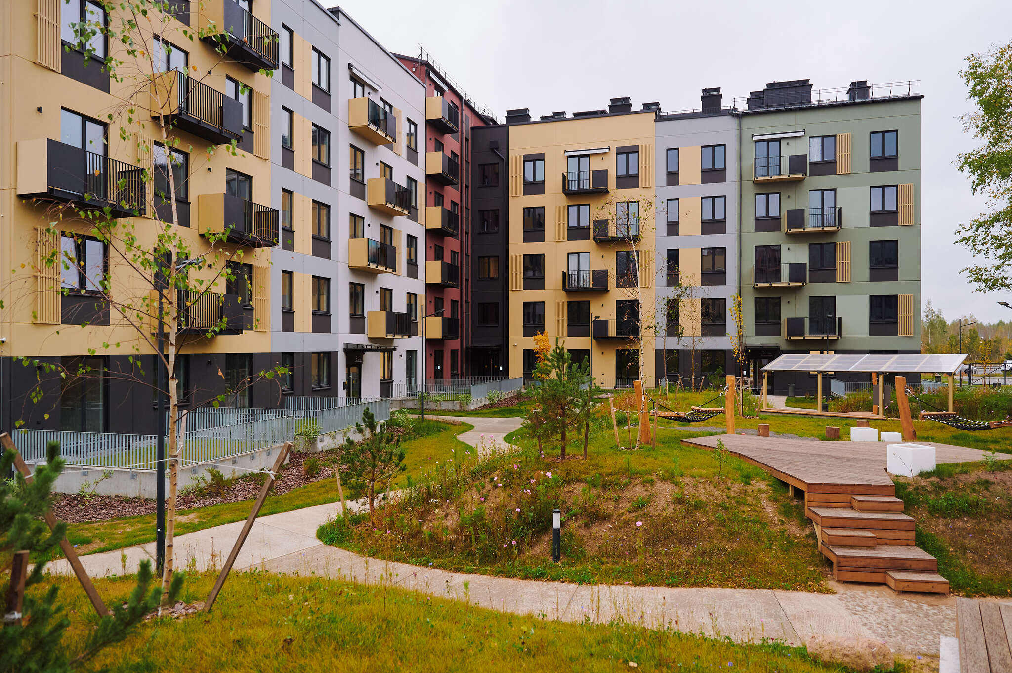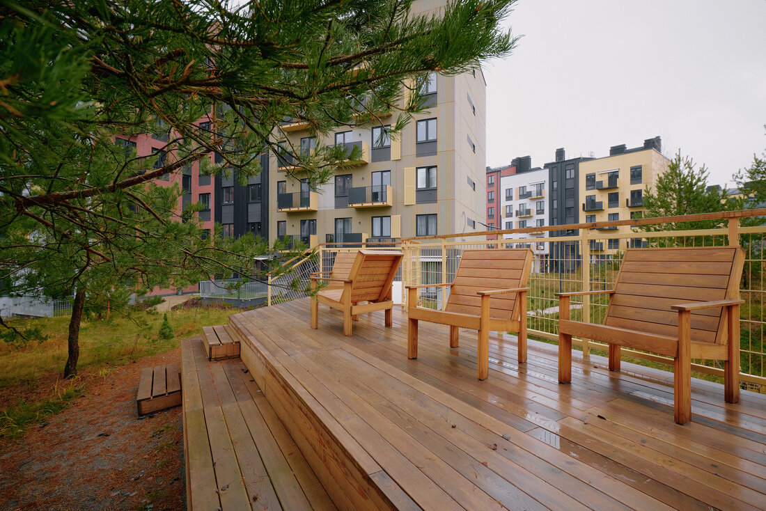 Именно поэтому с инженерной и планировочной точки зрения Зеленая гавань остается той, какой была задумана изначально: с малой плотностью, прогулочными маршрутами, парками и ограничением по высотности — до девяти этажей. Кроме того, в планах застройщика продолжать активно обустраивать и озеленять территорию квартала. Только в этом году здесь собираются высадить более 500 деревьев, чтобы дополнительно усилить буферную зону.