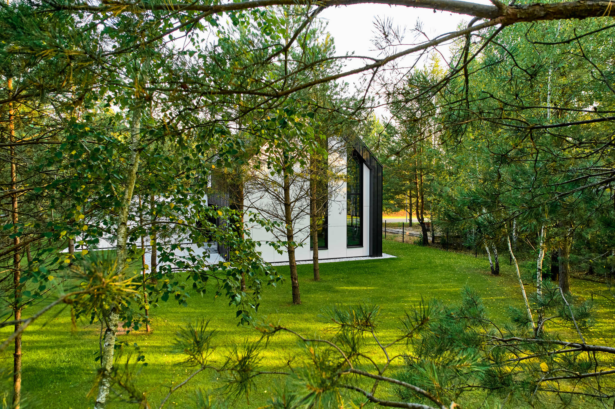 Для проекта по-прежнему принципиальны закрытые дворы, видеонаблюдение, контроль доступа на территорию, собственная управляющая компания и приватная организация среды. Кроме того, между территориями Зеленой гавани и Зеленого бора предусмотрена буферная зона, которая работает не только как планировочное, но и как визуальное разделение. Она создает дистанцию между двумя жилыми сценариями и не дает ощущения, что один район постепенно перетекает в другой: