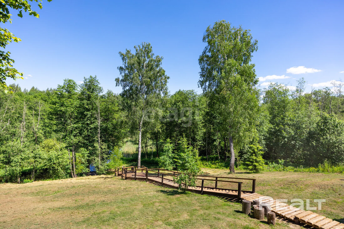 По хозяйству все продумано: новые хозпостройки, плодовый сад, ухоженная территория. По документам размер участка — 25 соток. Он огорожен и благоустроен. Вокруг лес — пространство кажется безграничным. К реке Клёве ведет дорожка, которая заканчивается большим деревянным пирсом.