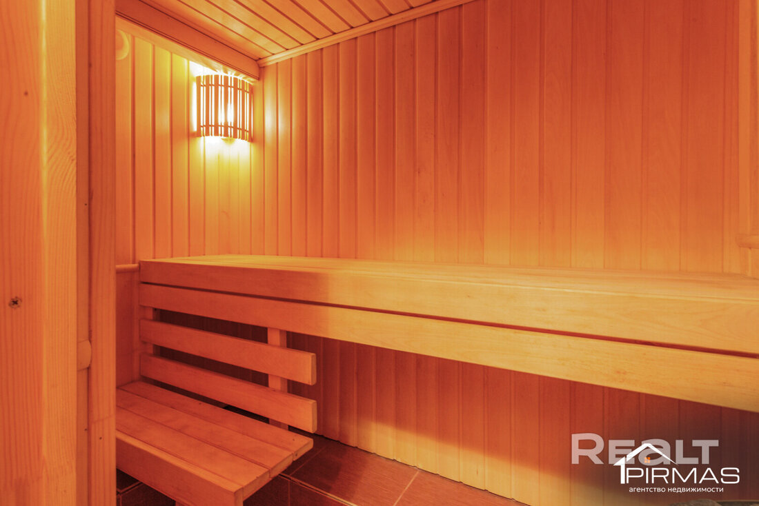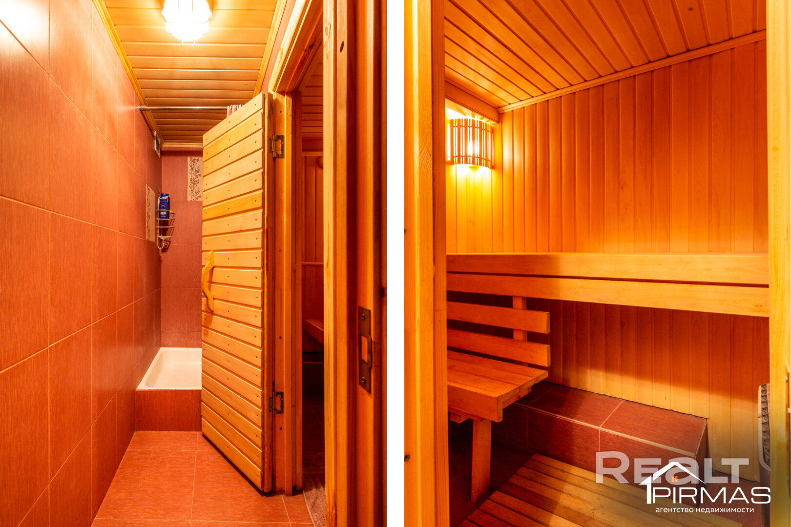 Новая сауна с душевой находится прямо внутри дома — она расположилась на цокольном этаже.