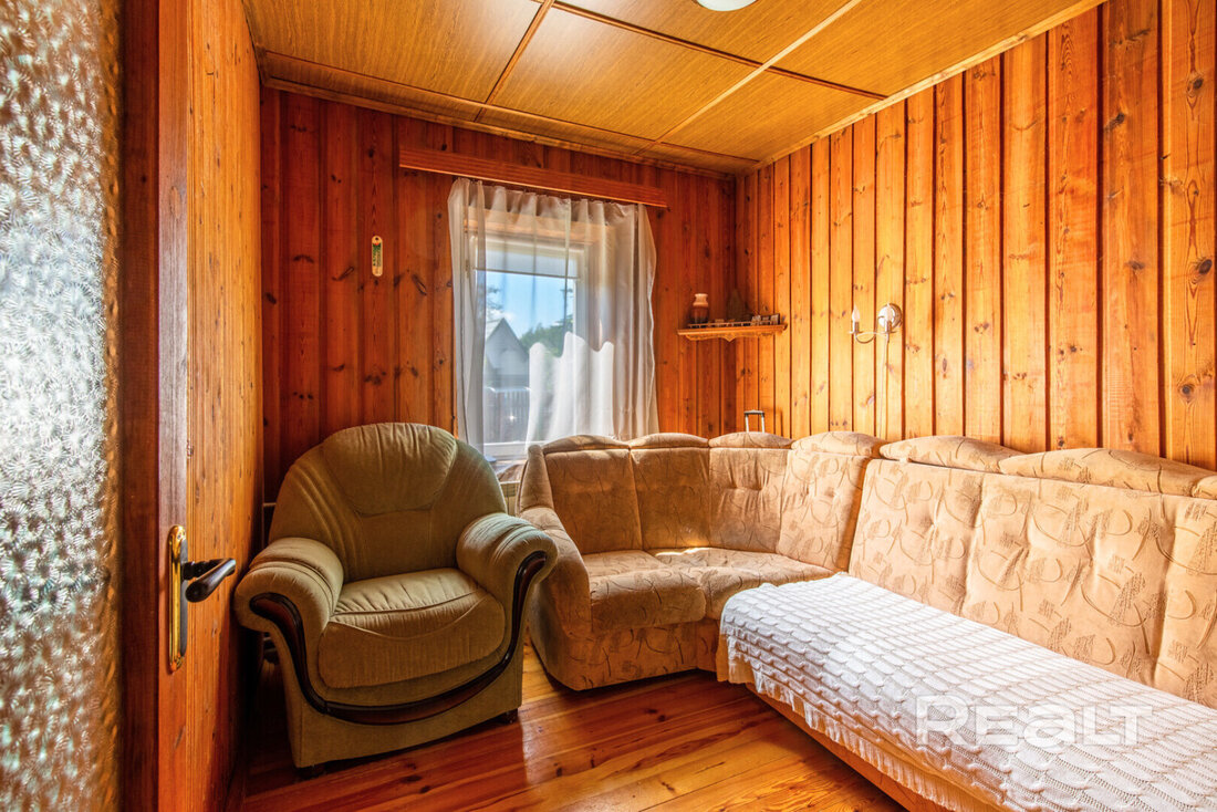 Общая площадь двухэтажного дома составляет 101 квадратный метр. Постройка собрана из дерева, в окнах — стеклопакеты, на крыше — новая металлочерепица.