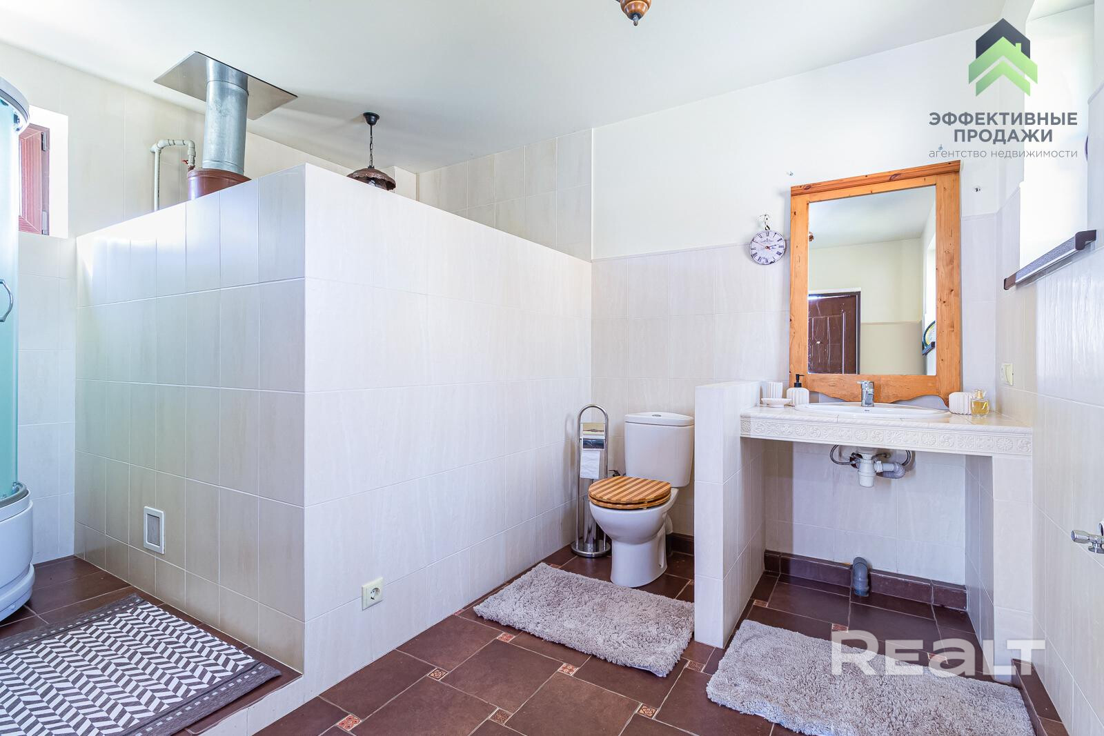 Вода на участке сезонная. Заведена в дом и в отдельно стоящее помещение, где сделан санузел и душевая. Там же можно организовать баню.