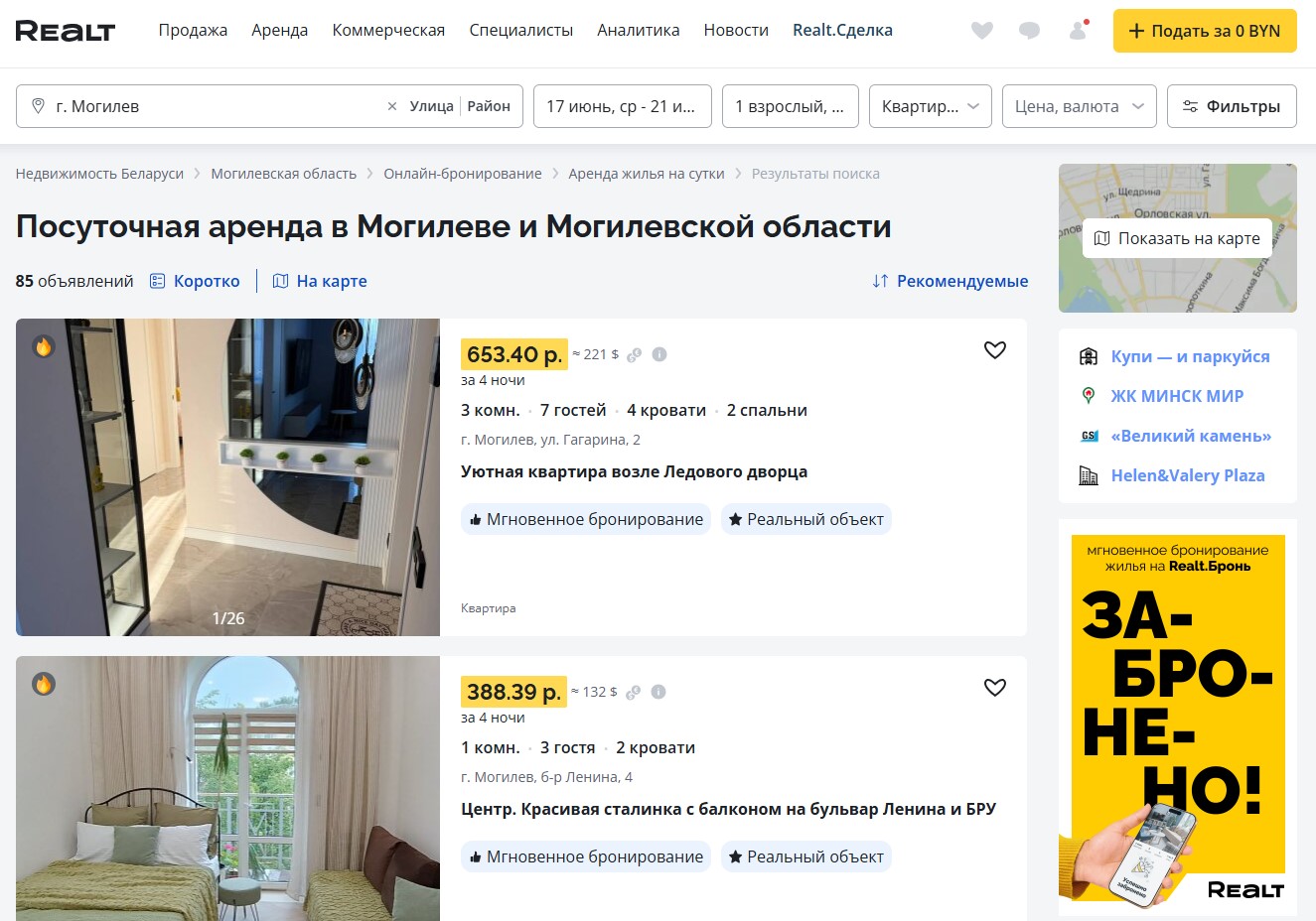 А найти и забронировать квартиру в любом районе Могилева с помощью сервиса Realt.Бронь! Это быстро, удобно и безопасно!