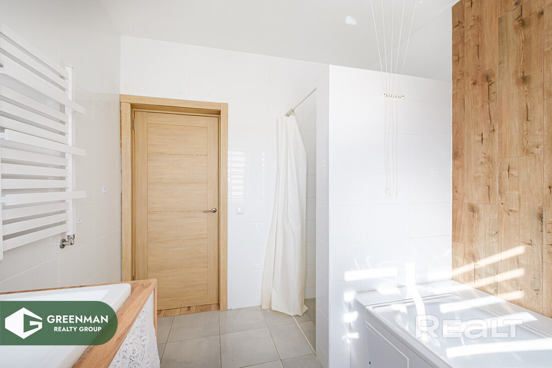 Отопление электрическое по льготному тарифу, на первом этаже теплые полы, на втором — батареи. Водоснабжение от скважины, канализация — септик. В 15 м от дома проходит газопровод, разработан проект на подведение газа.