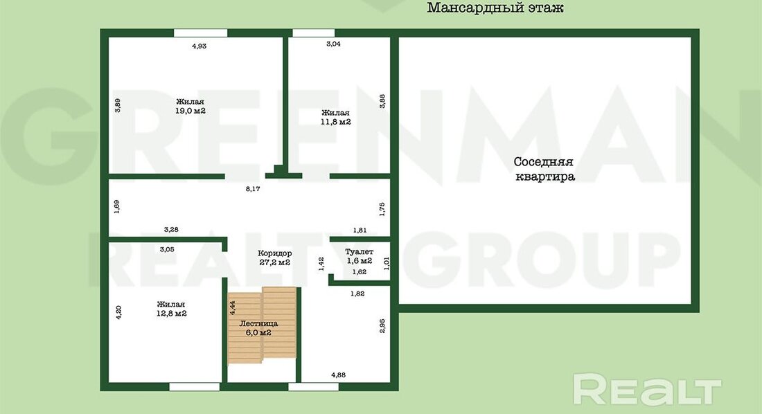 Второй этаж под отделку, лестница — временная.