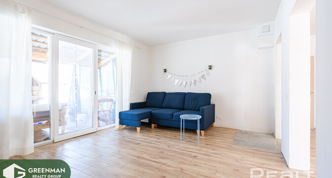 Здесь стоит присмотреться к квартире в таунхаусе 2020 года постройки (по сути, это двухквартирный дом). Фундамент ленточный (утеплен), стены из газосиликатных блоков, утеплены и оштукатурены, на крыше — металлочерепица.