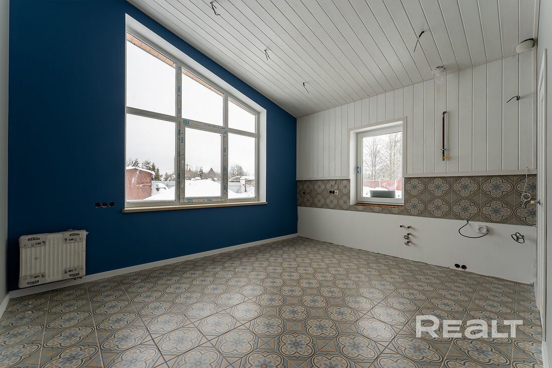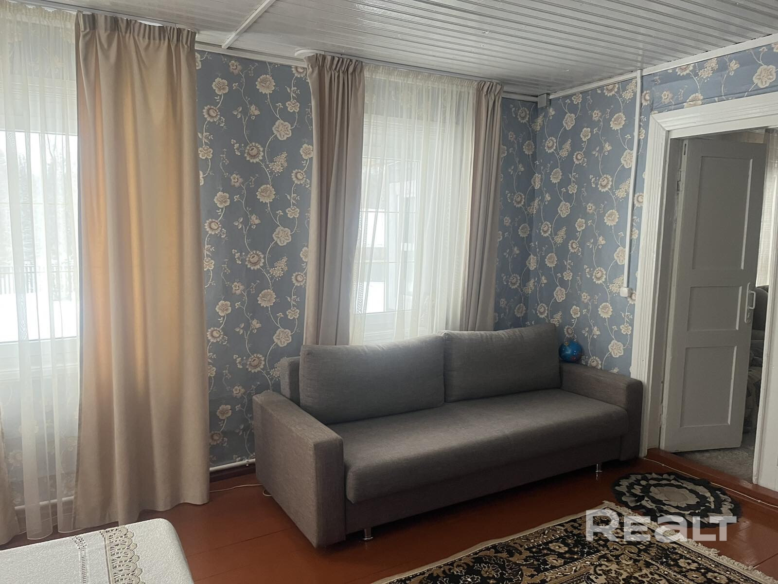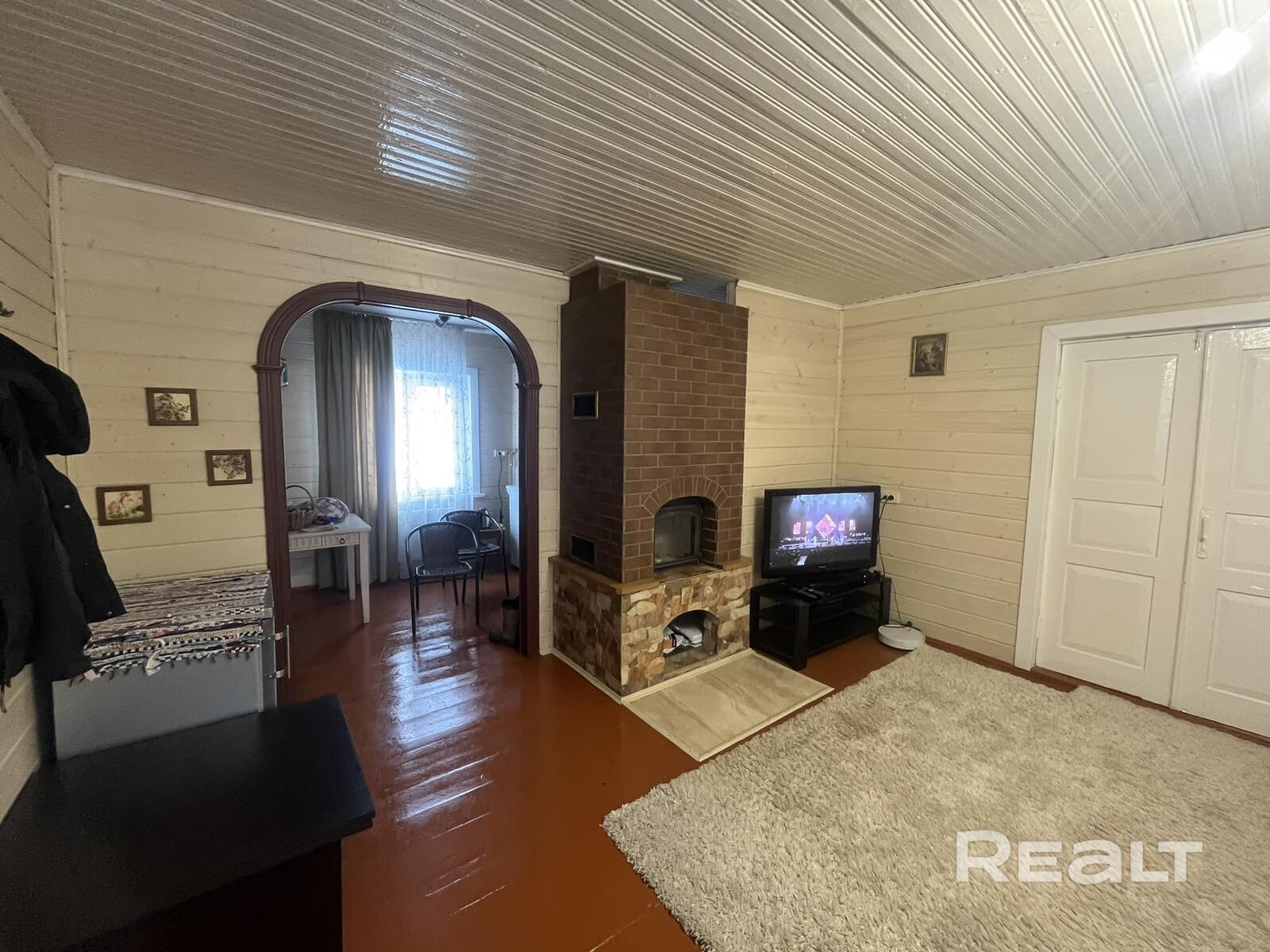 Дом деревянный, не новый, но в 2025 году здесь закончили реконструкцию: переделали полностью крышу, поставили новые окна ПВХ, покрасили фасад. Внутри стены обшиты имитацией бруса.