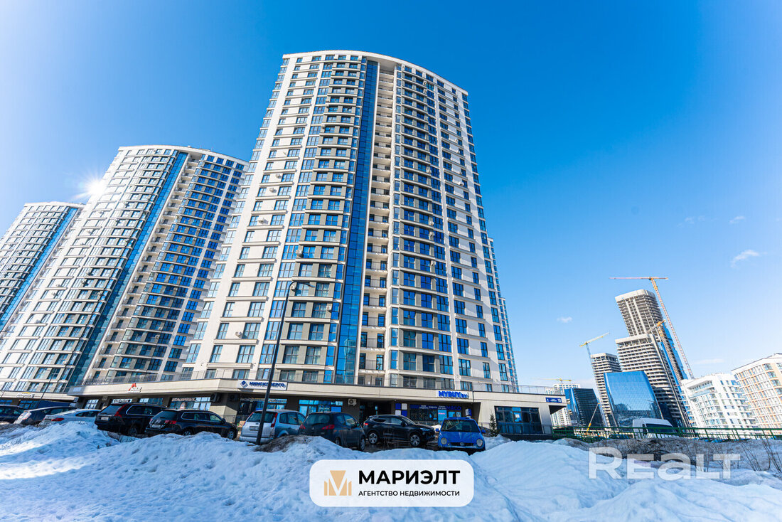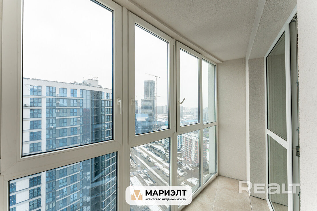Продается студия в 25-этажном жилом доме 2023 года постройки на Жореса Алферова, 10 – это ЖК «Минск-Мир». Квартира находится на 23-м уровне и занимает 26 квадратных метров.