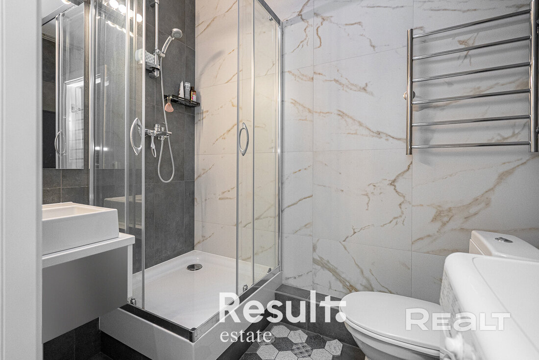 Последняя квартира расположилась на третьем этаже 17-уровнего жилого дома на Грушевской, 86. Студия занимает 29,9 м². Дом построили в 2021-м.