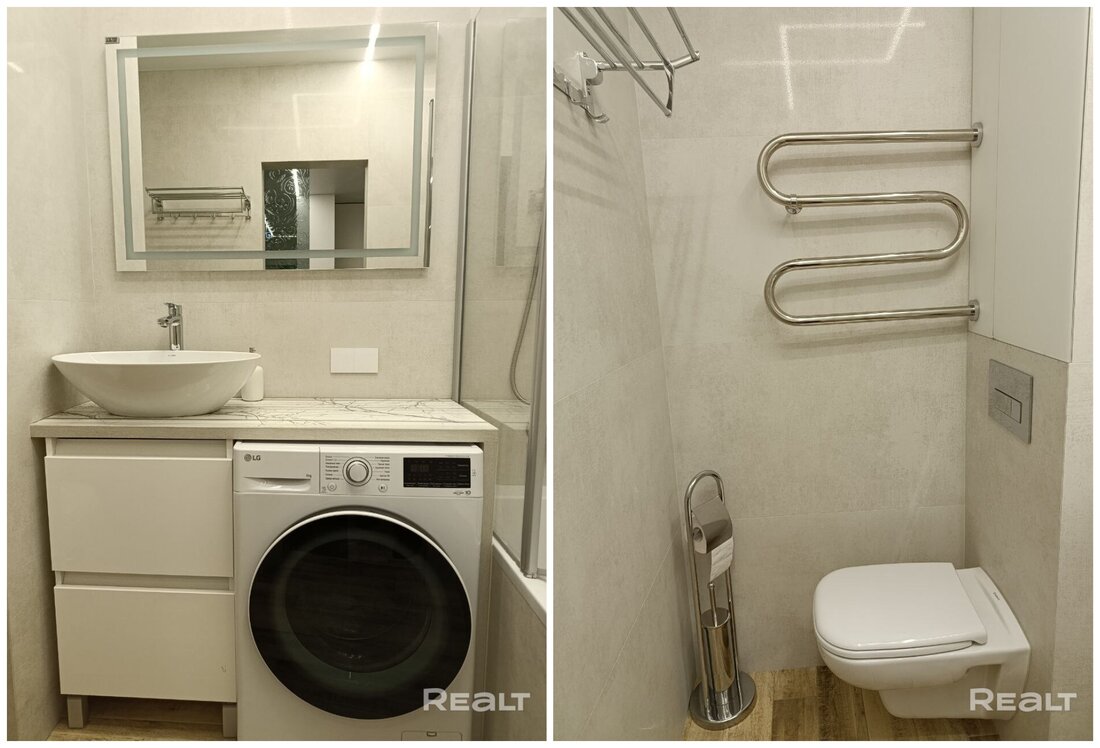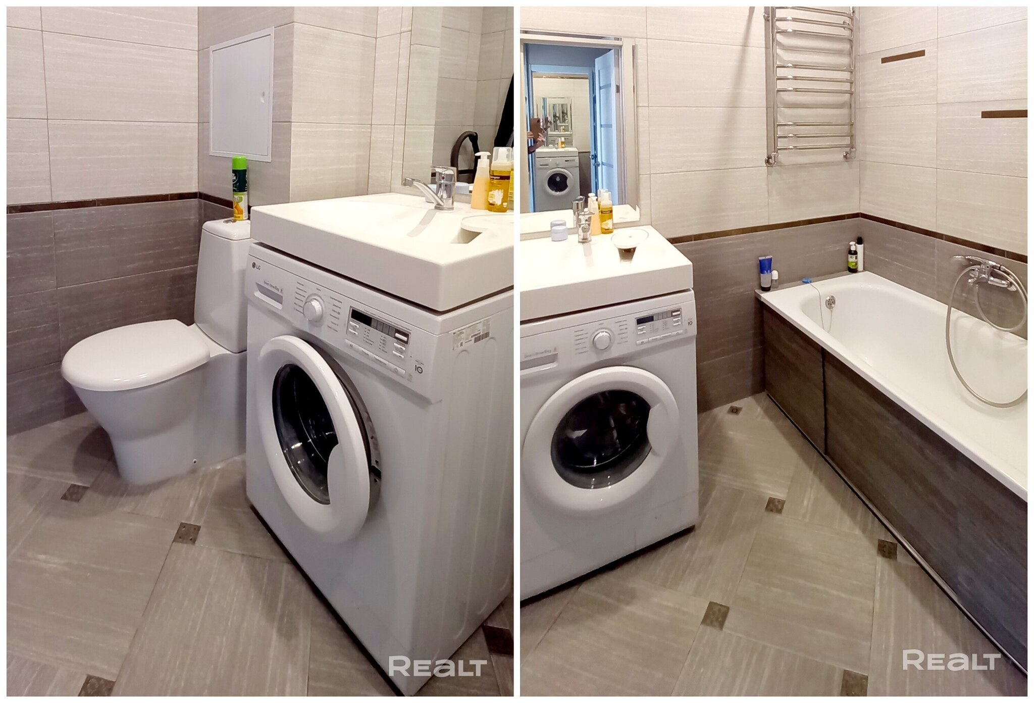 Санузел — совмещенный, с ванной и стиральной машиной.