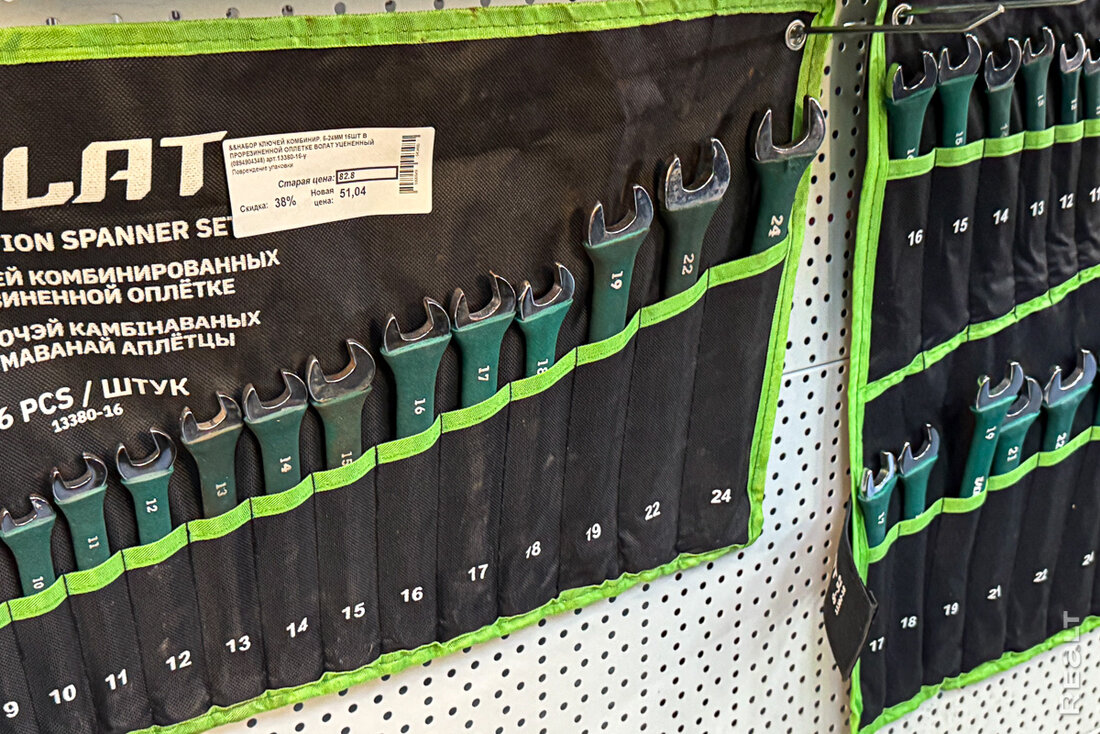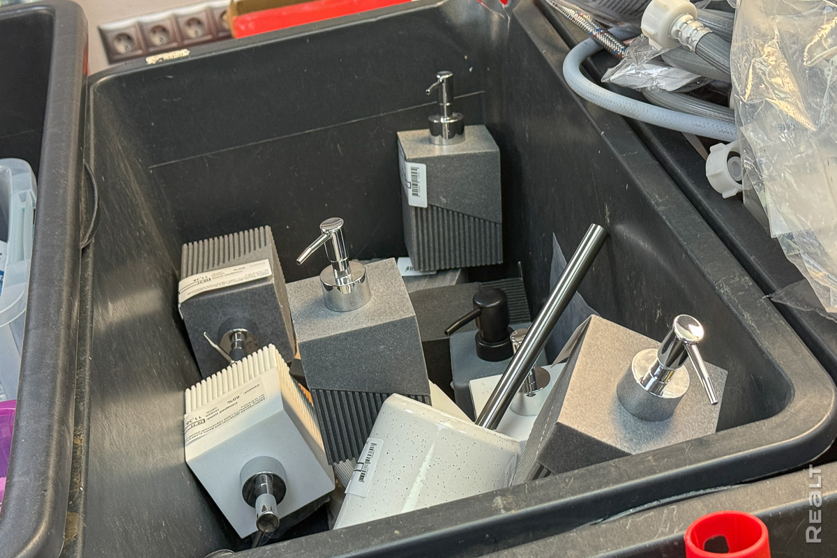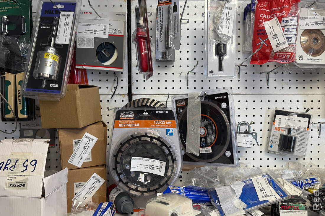 Есть в магазине и товары для ремонта и стройки. В основном, это инструменты. В день нашего визита еще были мойки за 150−200 рублей и смесители со скидками.