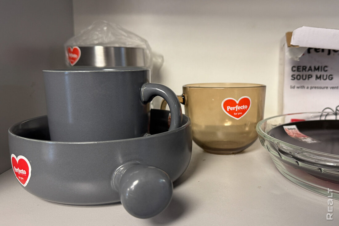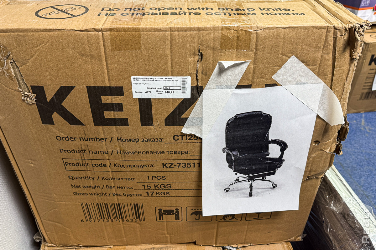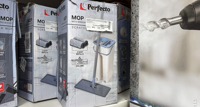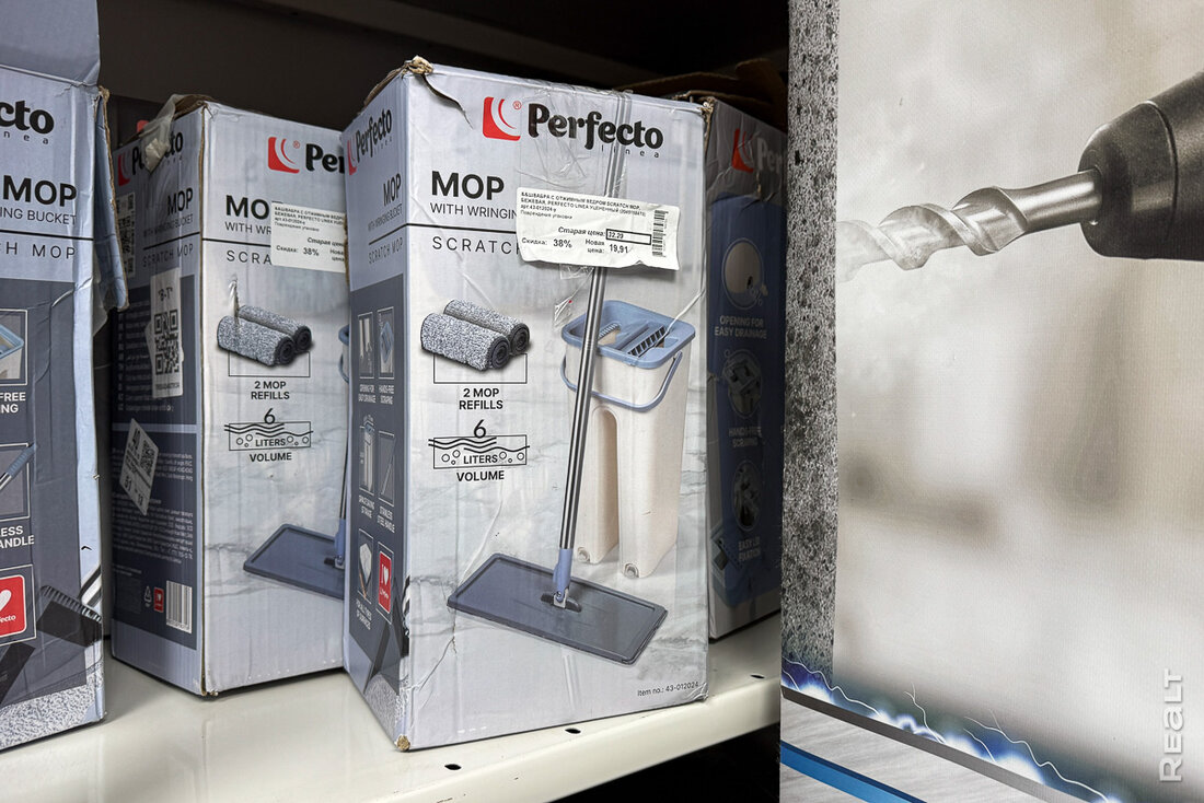 Есть в магазине товары для дома — посуда, декор, товары для уборки, встречаются нескоторые позиции мебели. Например, компьютерное кресло продается со скидкой 42% из-за поврежденной упаковки. Его цена — 246 рублей вместо 424 рублей. Есть самые разные швабры. С отжимным ведром можно купить за 19 рублей вместо 32 рублей. Причина та же — поврежденная упаковка.