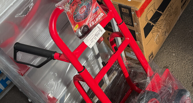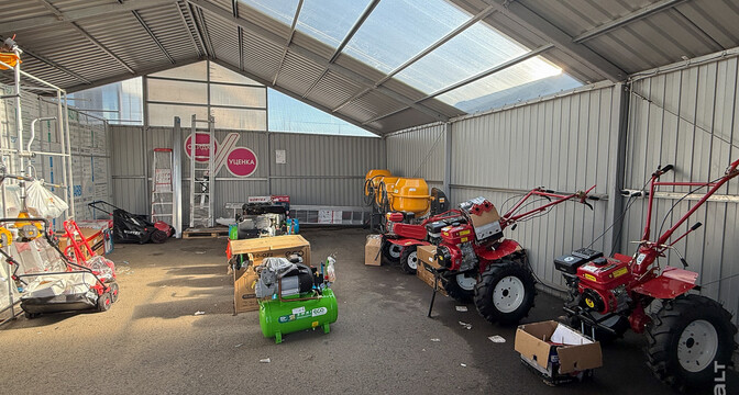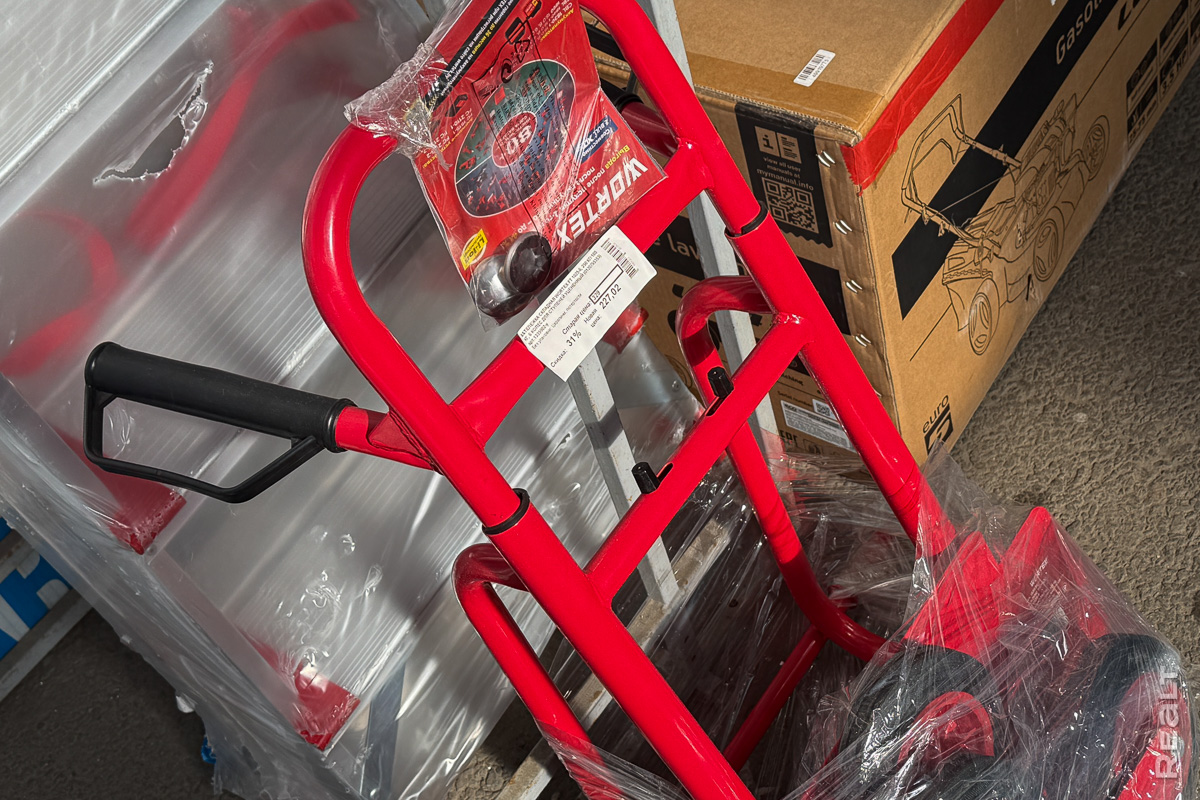 В отдельном помещении находится объемные товары. В основном, это что-то для работы на дачном участке. К примеру, мотокоса, которая раньше стоила 576 рублей, сейчас продается за 392 рубля. Правда, она без упаковки и с потертостями.