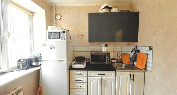 Последняя однушка в подборке прописалась четырехэтажке 1959 года на Гебелева, 3. В 2005-м тут прошел капремонт. Жилье находится на последнем этаже и занимает 27,7 м². Площадь кухни — 5 квадратных метров.