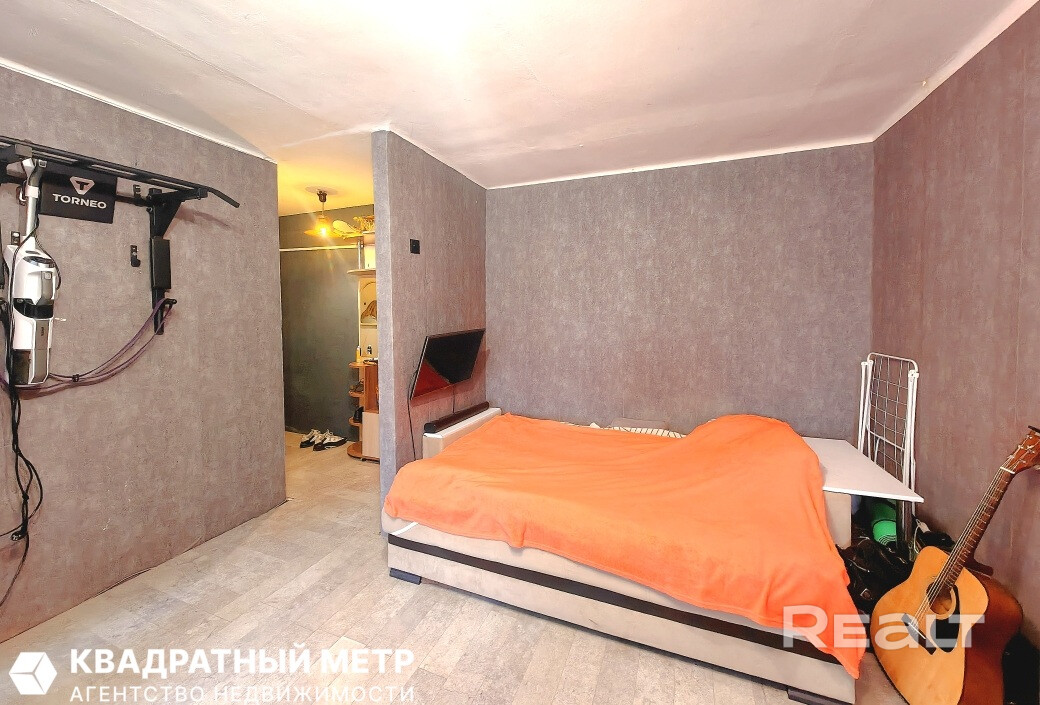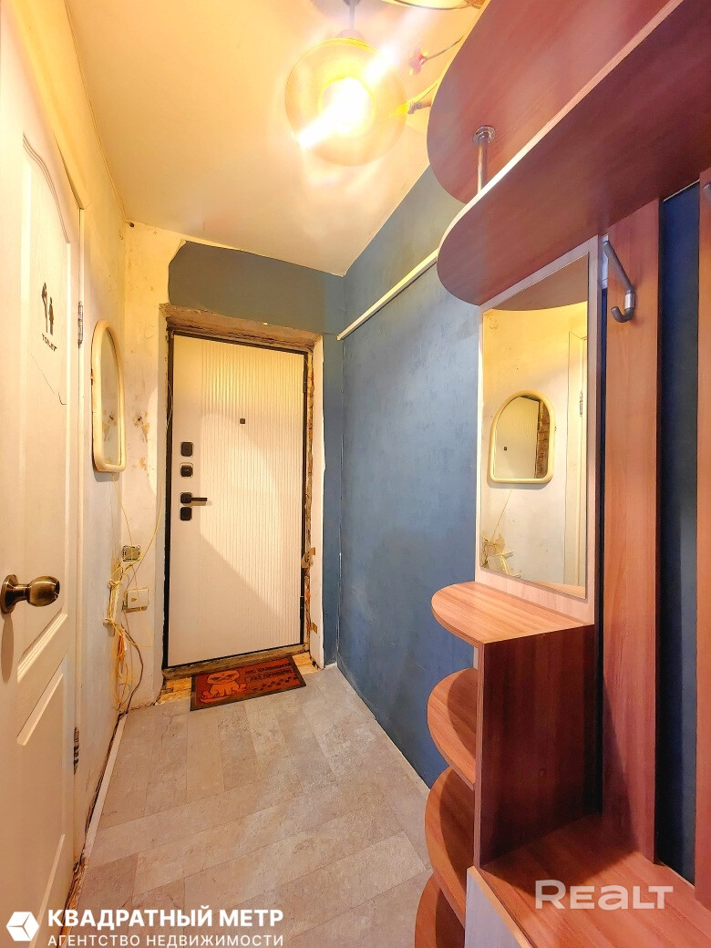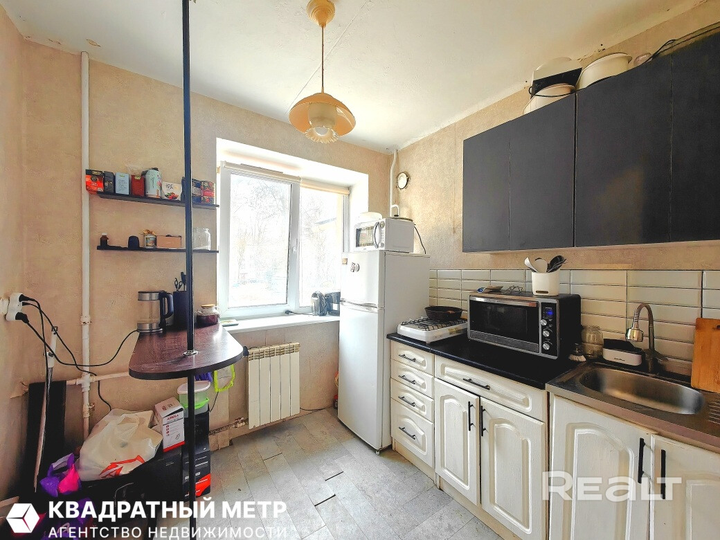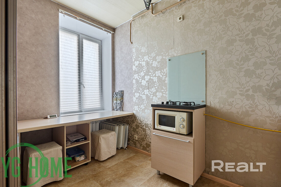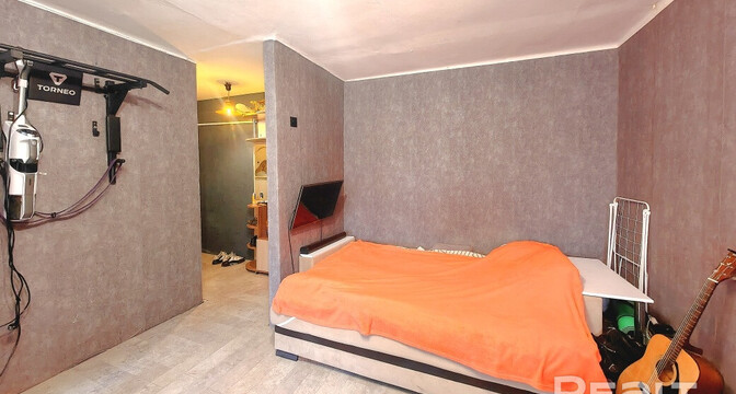Однушка местами нуждается в обновлении: стены оклеены обоями, стоят стеклопакеты, окна выходят во двор. Квартира без балкона, но есть хозпомещение в подвале.