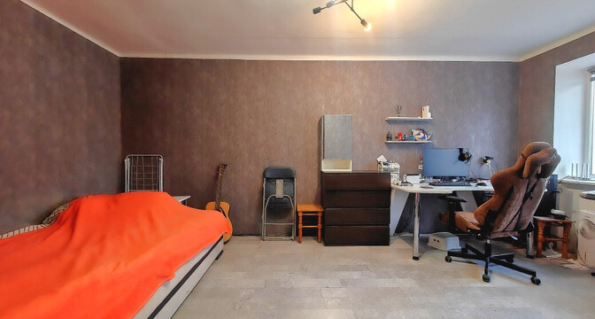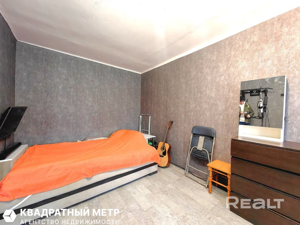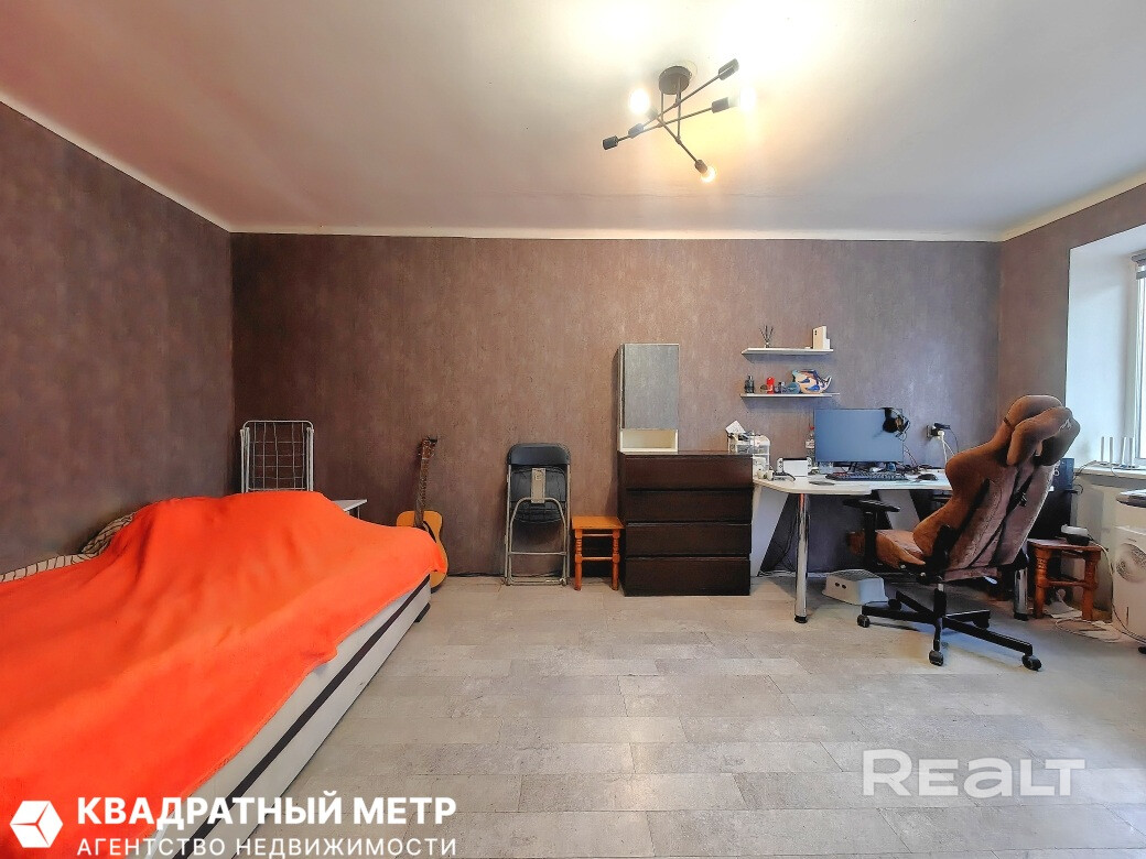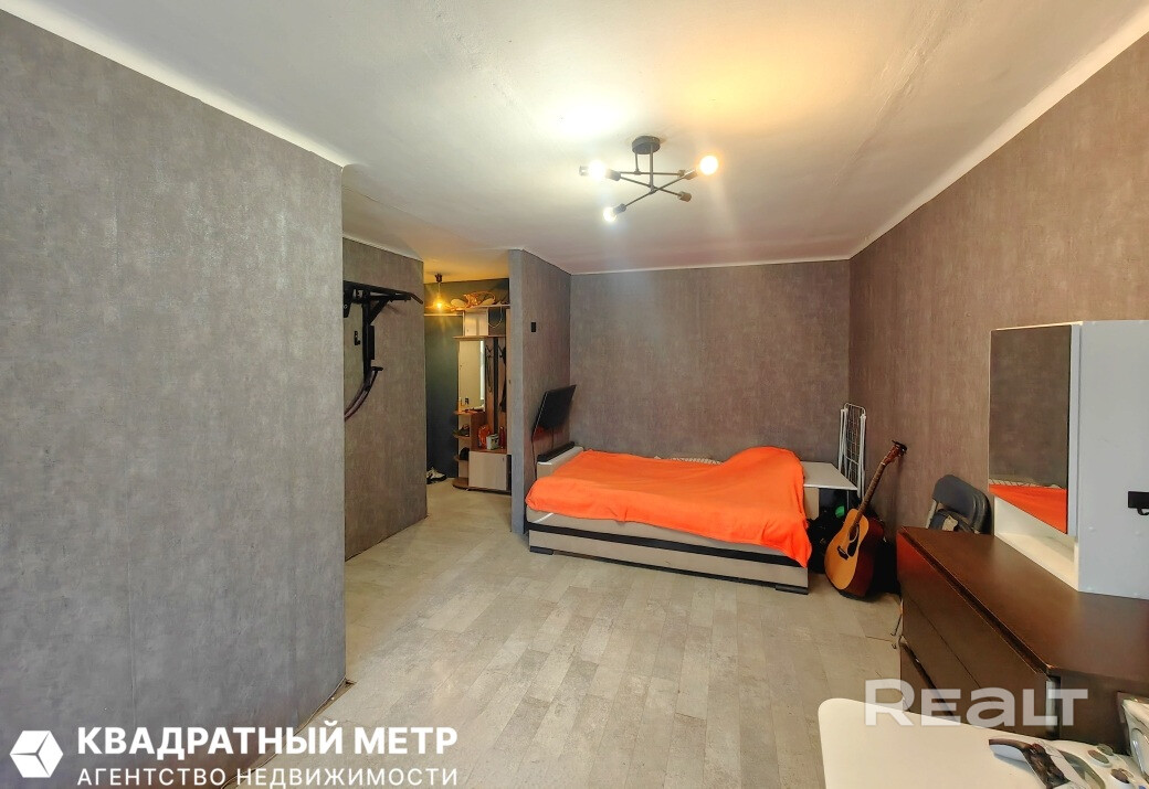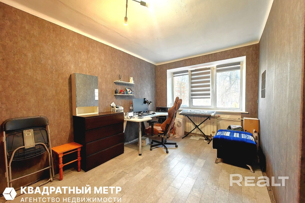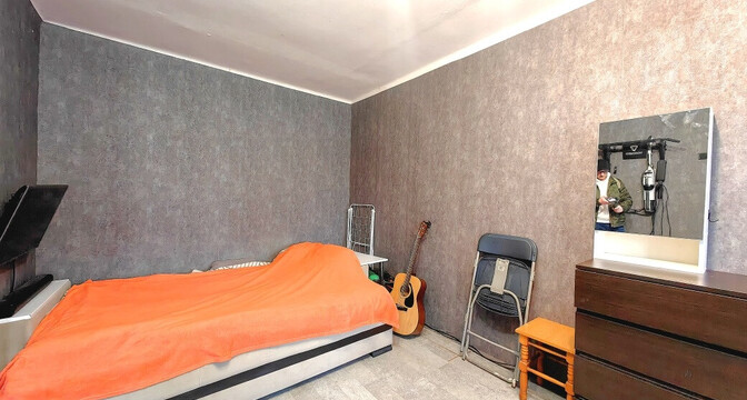 Однушка местами нуждается в обновлении: стены оклеены обоями, стоят стеклопакеты, окна выходят во двор. Квартира без балкона, но есть хозпомещение в подвале.