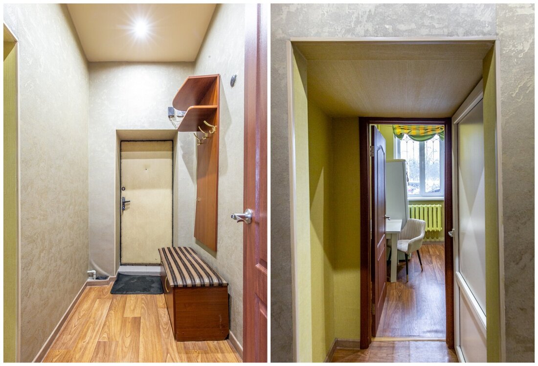 Еще одна однокомнатная квартира располагается на Короля, 17 в четырехэтажном доме 1961 года постройки. Она находится на первом уровне и занимает 30 квадратов, 6 из них приходится на кухню. В 2021 году в доме был проведен капитальный ремонт.