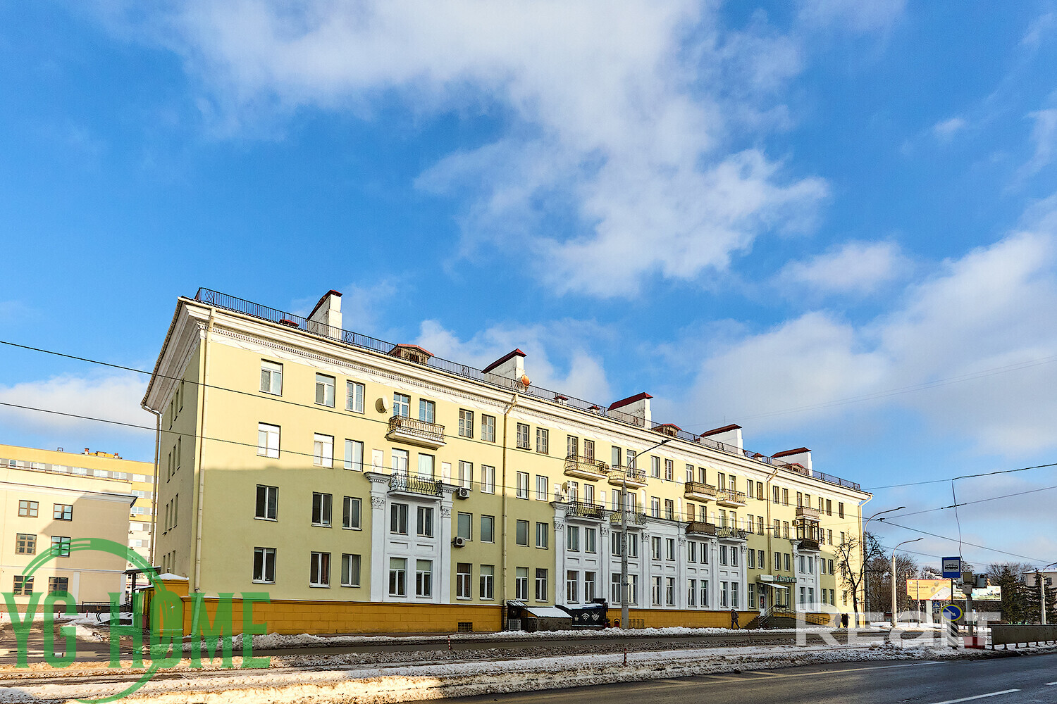 Недалеко от дома находится ТЦ «Корона», в шаговой доступности парк и стела Минска.