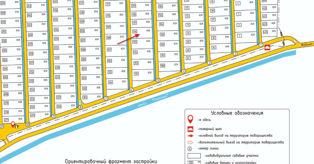 Сейчас в СТ на продажу за долги собственника выставили участок № 136 площадью 9 соток. О строениях на участке ничего не сказано. Вероятно, территория пуста. Судя по карте, участок под дачу расположен в восточной части поселка, недалеко от остановки автолавки и мелиоративного канала.