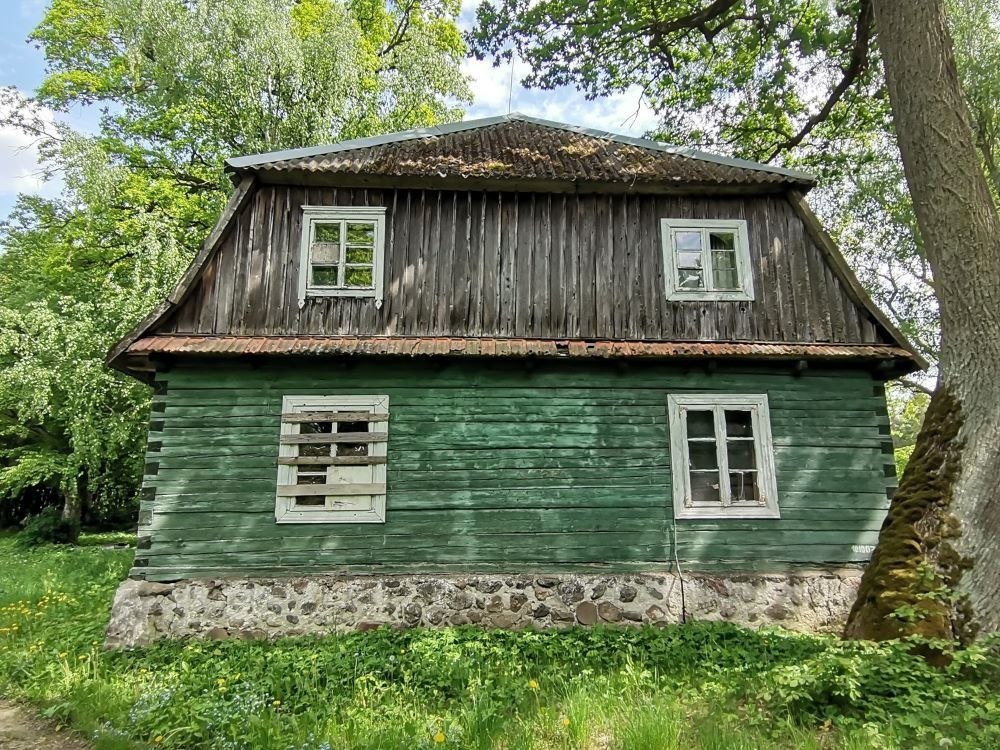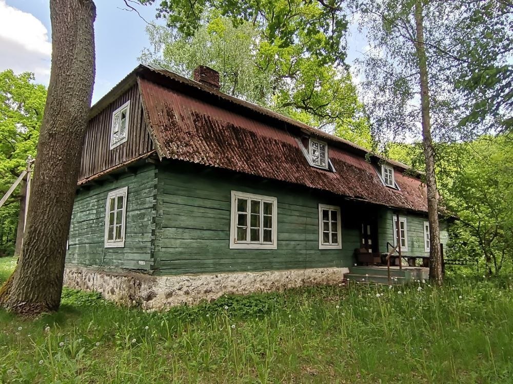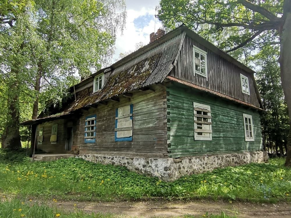 Двухэтажная деревянная постройка появилась на окраине деревни в 1926 году. Рядом находятся другие постройки прошлого века — «лесничевка» и коптильня. Наружные и внутренние стены здания выполнены из бруса, а крыша покрыта асбестоцементным волнистым листом. Отопление в доме — печное, как и полагается зданию такого почтенного возраста.