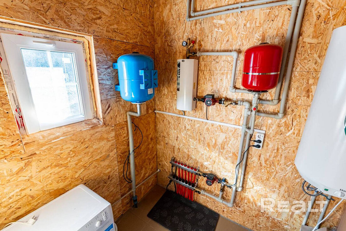 Вода поступает из скважины, есть бойлер, а канализация — местная. Установлено электрическое отопление, сделаны теплые полы.