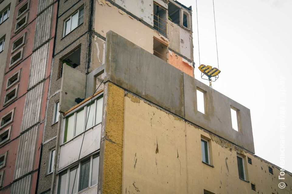 17 декабря из-за взрыва газа в одной из квартир гомельского дома на улице Косарева произошло обрушение потолочных плит верхних этажей, погибла женщина. Власти приняли решение восстановить многоэтажку. Процесс разделили на два этапа. Как сообщает «Правда Гомель», проектные работы по двум очередям завершены, получено положительное заключение экспертизы. Строители приступили к монтажу плит.