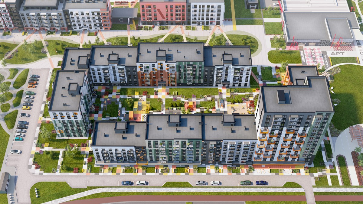 Первым возведут монолитный дом под номером 1.6 по генплану. Он войдет в группу «Пиксель-арт» и разместится рядом с пешеходным Арт-бульваром. На бульваре располагаются магазины, кафе и общественные зоны, неподалеку продуман музыкальный лабиринт и литературная площадь. В пешеходной доступности — супермаркет и паркинги.