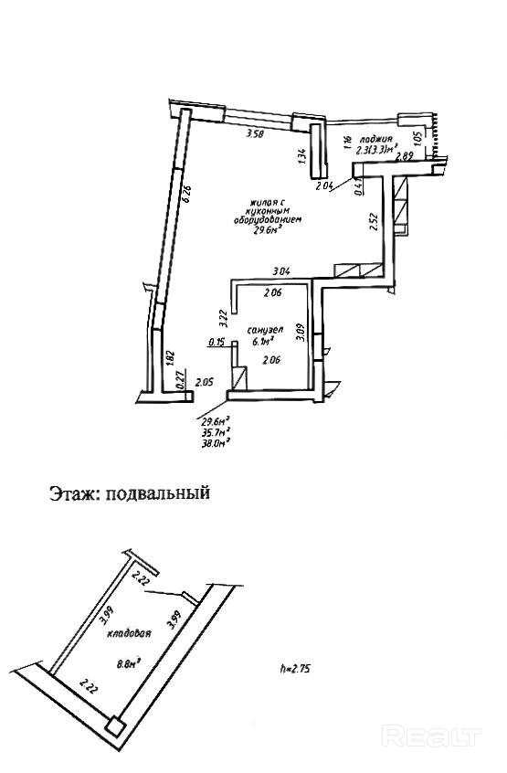 Кстати, к студии прилагается и отдельная кладовая почти в 9 метров.