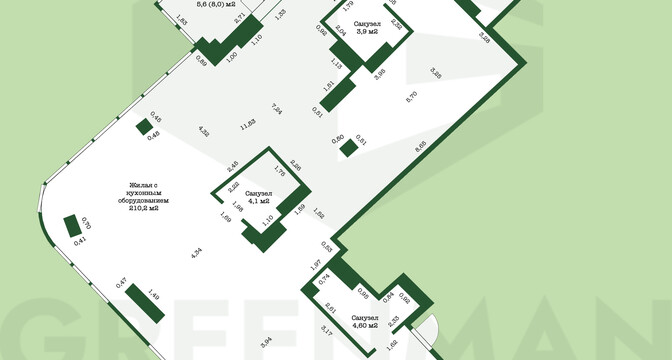Ну, а самый дорогой вариант — огромная квартира площадью 234 квадратных метра. Располагаются эти апартаменты на 16-м этаже 19-ти этажной башни. Внутри — панорамные окна, внутрипольные конвекторы, индивидуальный выход из лифта к квартире. Продают это жилье за 3,2 миллиона рублей, или 1,1 миллиона долларов (13 800 рублей = 4700 долларов за метр).