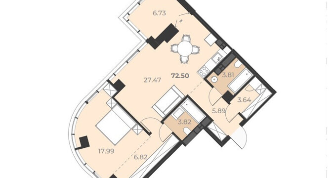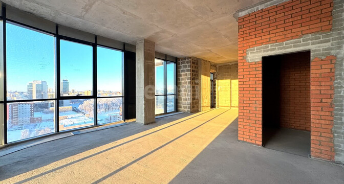 Самое недорогое предложение — двухкомнатная квартира площадью 52 квадратных метра. Это жилье распложено на 6-м этаже. Высота потолков — 3 метра. Панорамное остекление. Квартира предлагается без отделки. Стоимость — 743 тысячи рублей, или 253 тысячи долларов (14 079 рублей = 4794 доллара за метр).