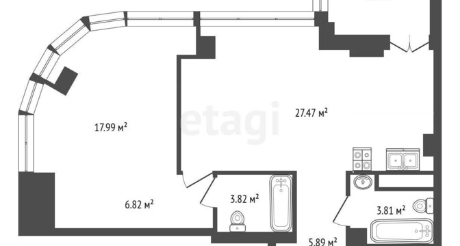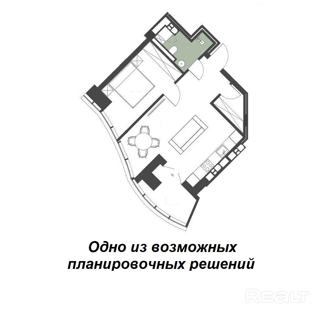 В продаже есть квартира и чуть просторнее. Жилье площадью 76 квадратных метров расположено на 15-м этаже и имеет свободную планировку. На фото в объявлении, кстати, представлен один из вариантов установки перегородок. Цена квартиры — 792 тысяч рублей, или 270 тысяч долларов (10 394 рубля = 3539 долларов за метр).