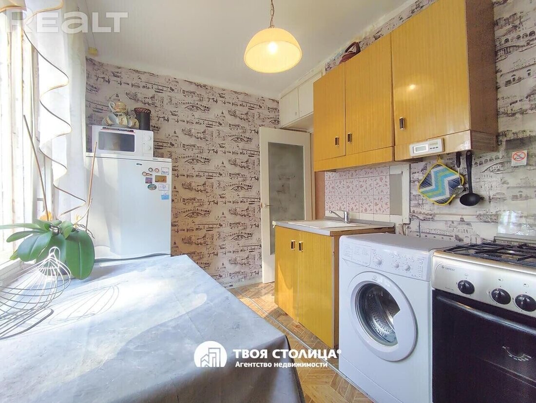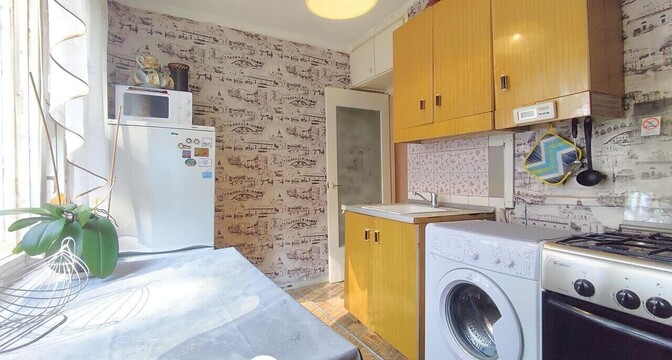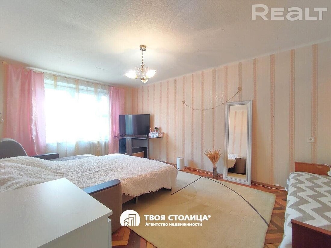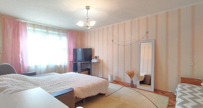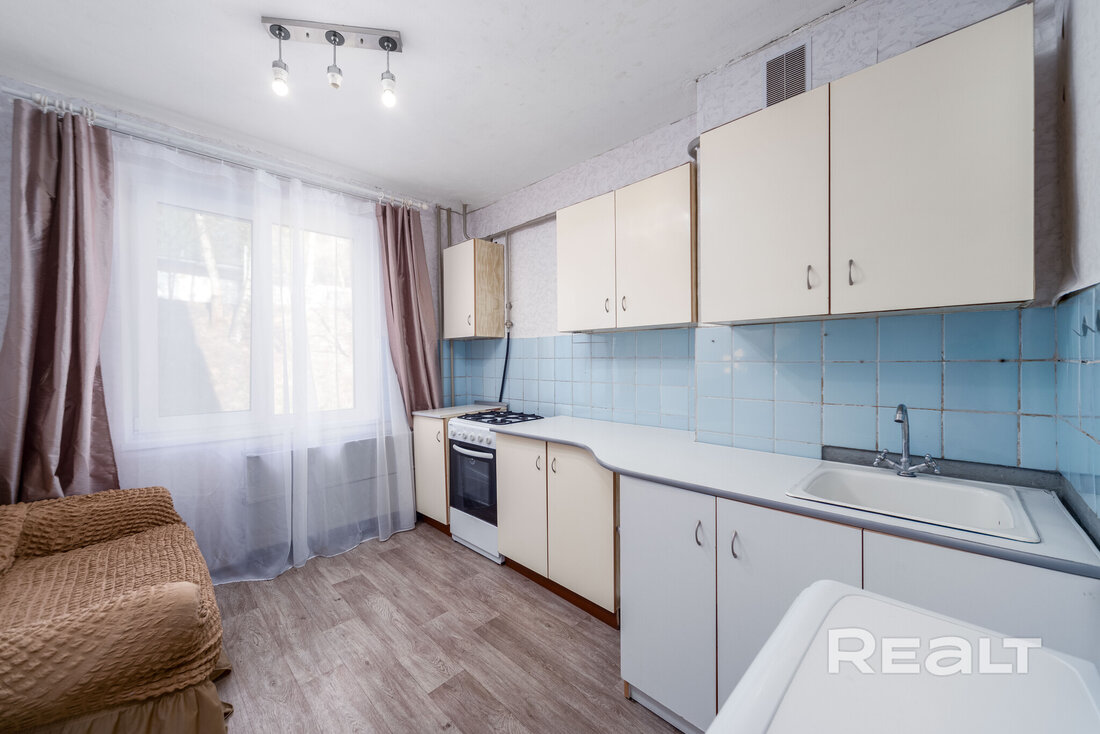 Самая бюджетная — однокомнатная квартира (а в нашей подборке все будут однокомнатными) на пятом этаже девятиэтажного дома по адресу Алеся Бачило*, 7 корпус 3. Ближайшая станция метро — «Могилевская», до нее около пяти километров, а на автобусе можно добраться минут за 20.
