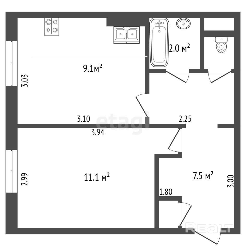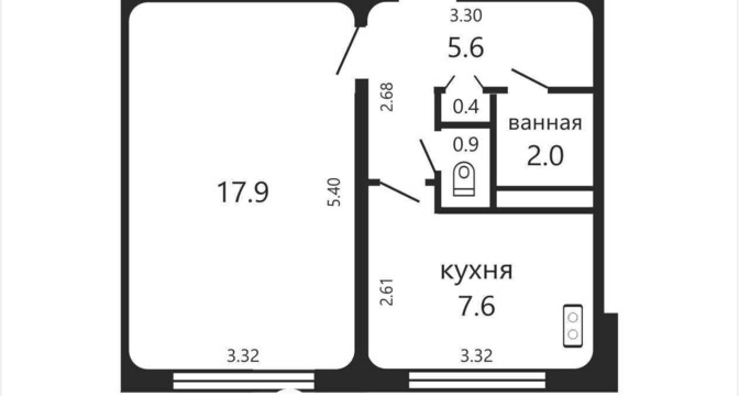 Общая площадь — 31 квадрат. На жилую приходится 11 метров. Еще 9 метров — это кухня. Санузел раздельный.